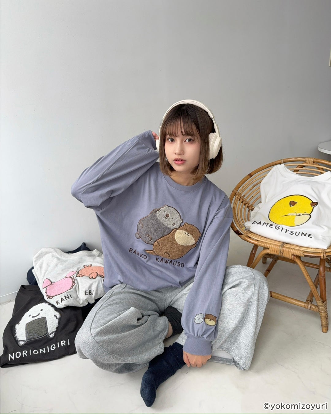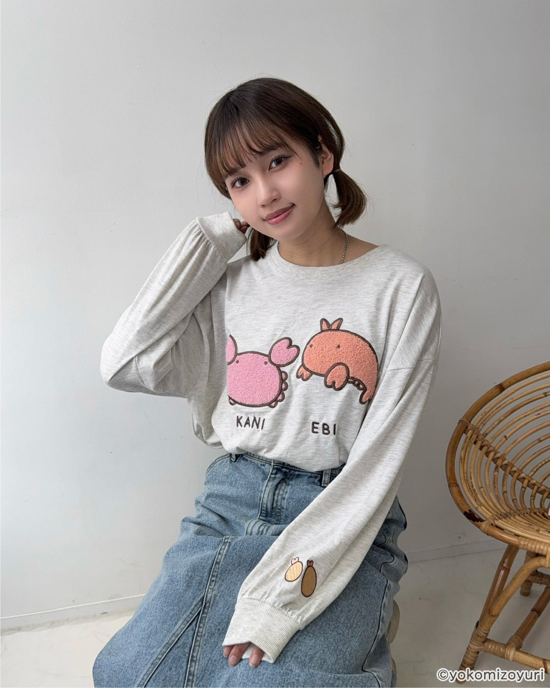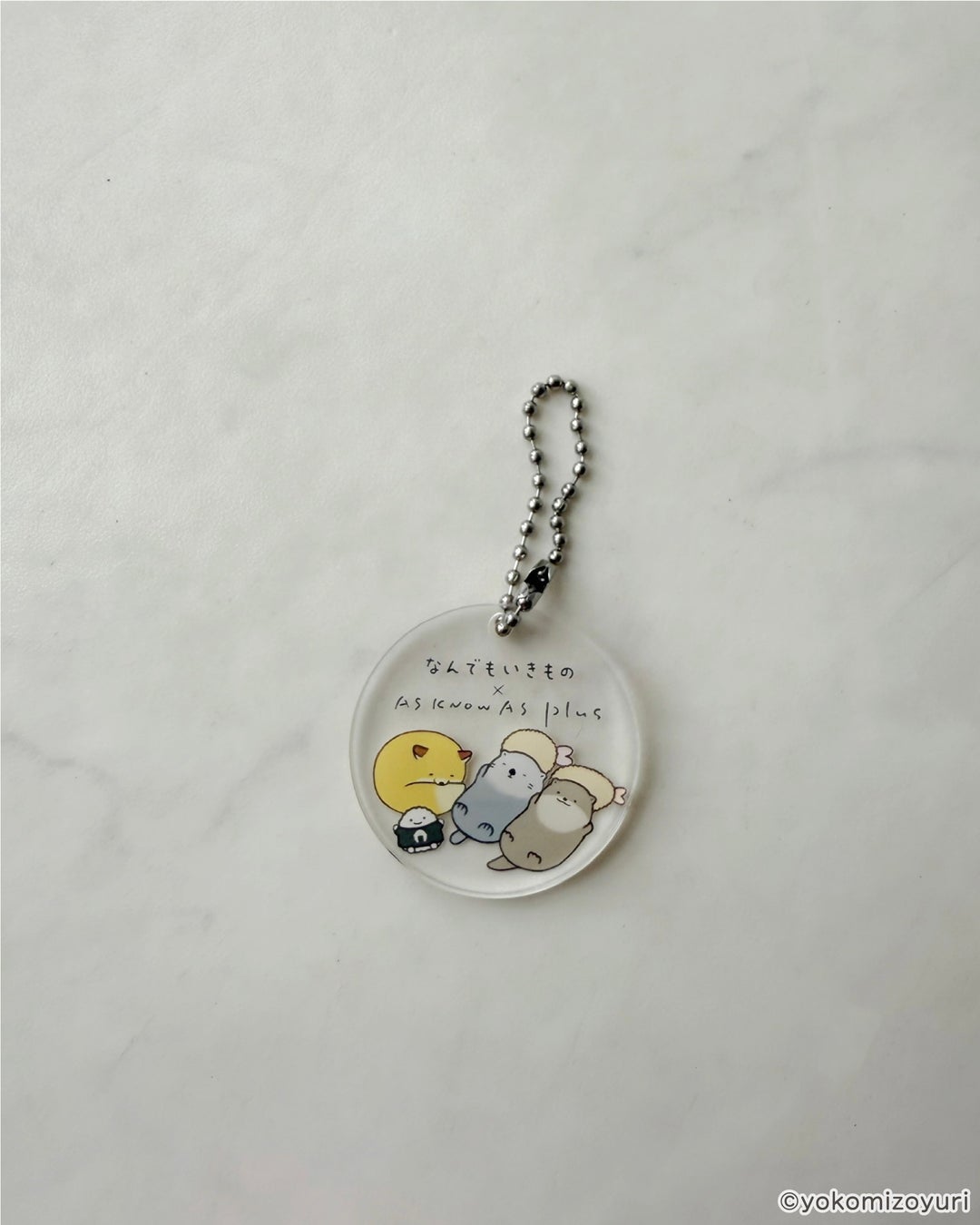 よこみぞゆりさんの描く 『 なんでもいきもの 』のキャラクターたちがふわふわとデザインされたロンTがAS KNOW AS plusから登場♪アクリルキーホルダーもセット。