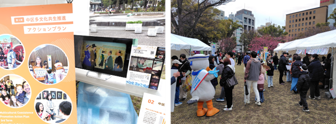 「GREEN×EXPO 2027」開催1年前を記念した本イベントでは、「環境共生」「多文化」「グルメ」をテーマに多彩な体験ブースが設けられ、会場は多くの人々で賑わいました。そのなかで本アニメーションは「中区多文化共生推進アクションプラン」の紹介ブースにおいて、横浜開港期の歴史や文化を伝える施策の一環として活用。中区制100周年を目前に、アニメーションを通じて次世代へ海と歴史の繋がりを伝えるとともに、多文化共生への理解を深める一助となりました。