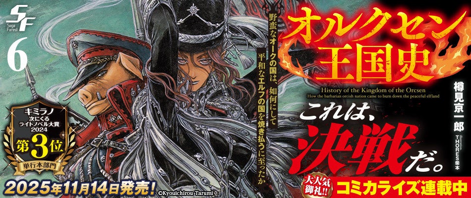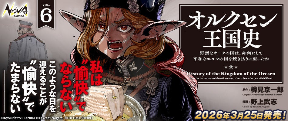 株式会社エディア(本社:東京都千代田区、代表取締役社長:賀島 義成)の子会社、株式会社一二三書房(本社:東京都千代田区、代表取締役社長:山崎 篤 以下:一二三書房)は、”戦記ロマンの新境地”として話題の『オルクセン王国史~野蛮なオークの国は、如何にして平和なエルフの国を焼き払うに至ったか~』のコミック最新6巻を2026年3月25日に発売いたしました。