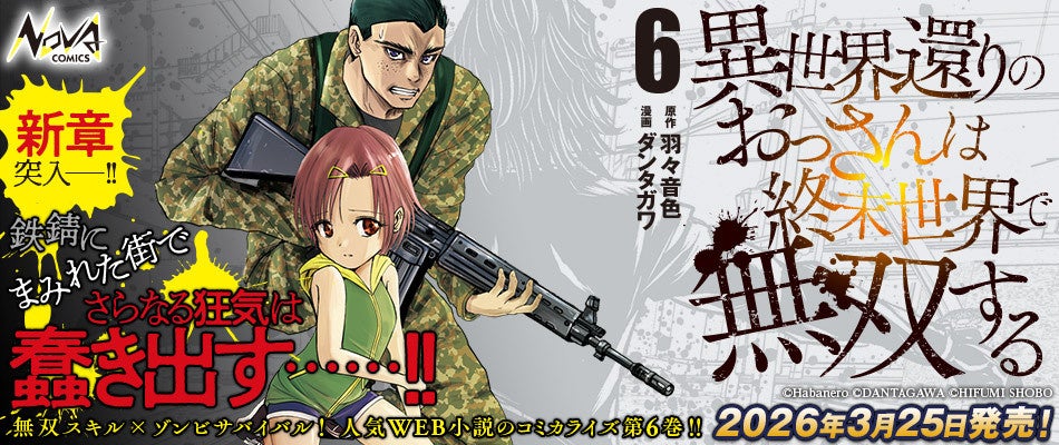 株式会社エディア(本社:東京都千代田区、代表取締役社長:賀島 義成)の子会社、株式会社一二三書房(本社:東京都千代田区、代表取締役社長:山崎 篤 以下:一二三書房)は、同社が提供するコミックレーベル”コミックノヴァ“にて連載発売中の『異世界還りのおっさんは終末世界で無双する』の紙書籍と電子書籍の累計部数が20万部を突破したことをお知らせいたします。