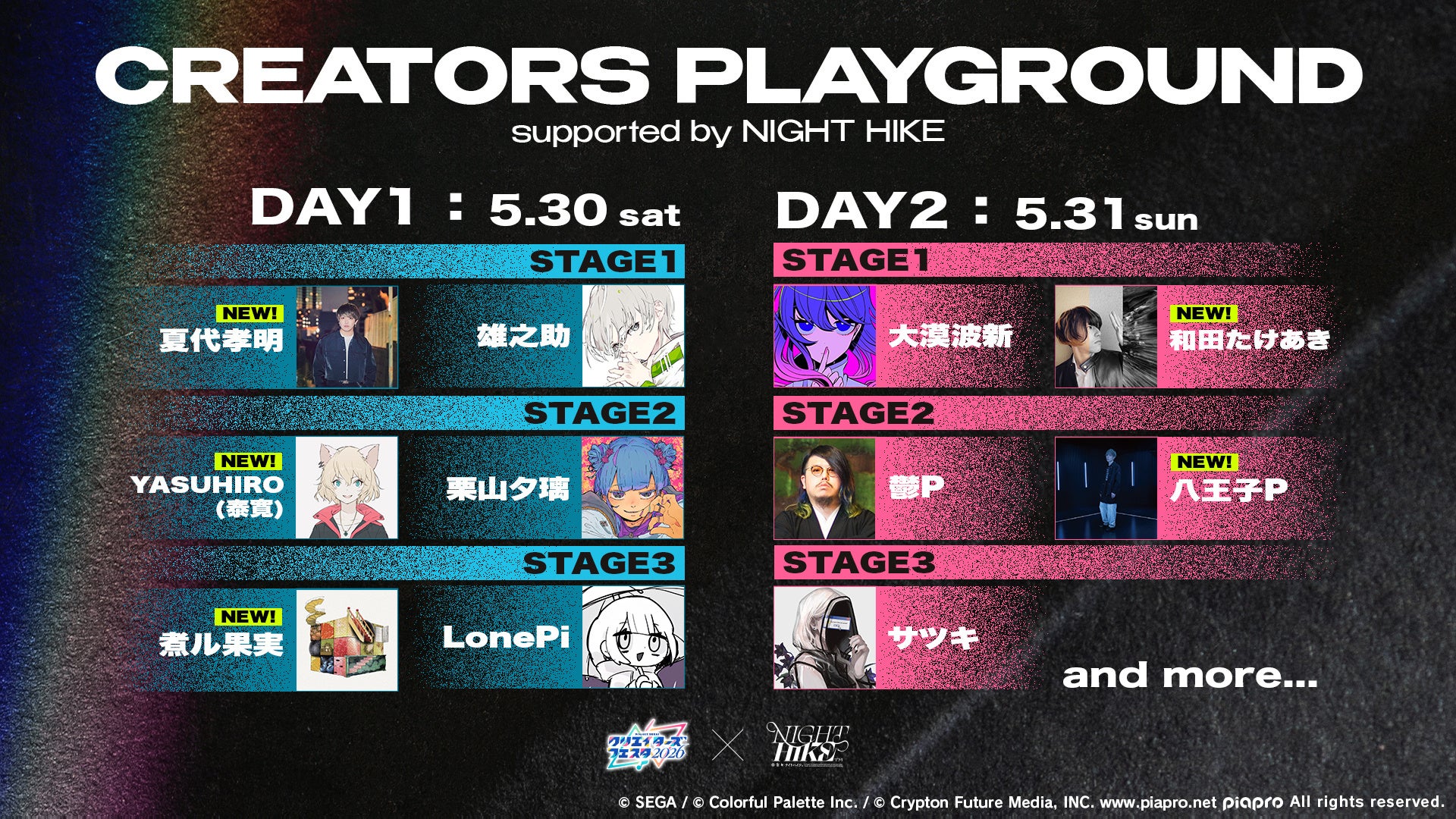 <CREATORS PLAYGROUND supported by NIGHT HIKE 出演者>