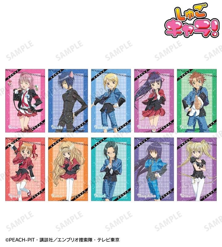 日奈森 あむ、月詠 イクト、辺里 唯世、藤咲 なでしこ、相馬 空海、結木 やや、真城 りま、三条 海里、藤咲 なぎひこ、ほしな 歌唄のイラストをホログラム加工を施したイラストカードに仕上げました。