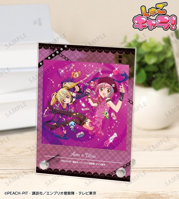 アクリルフレームの中に、日奈森 あむ、月詠 イクト、辺里 唯世、藤咲 なでしこ、相馬 空海、結木 やや、真城 りま、三条 海里、藤咲 なぎひこ、ほしな 歌唄のイラストと各キャラクターのモチーフを象った小さなパーツが入っている、パーツ付きフレームアクリルチャームです。
