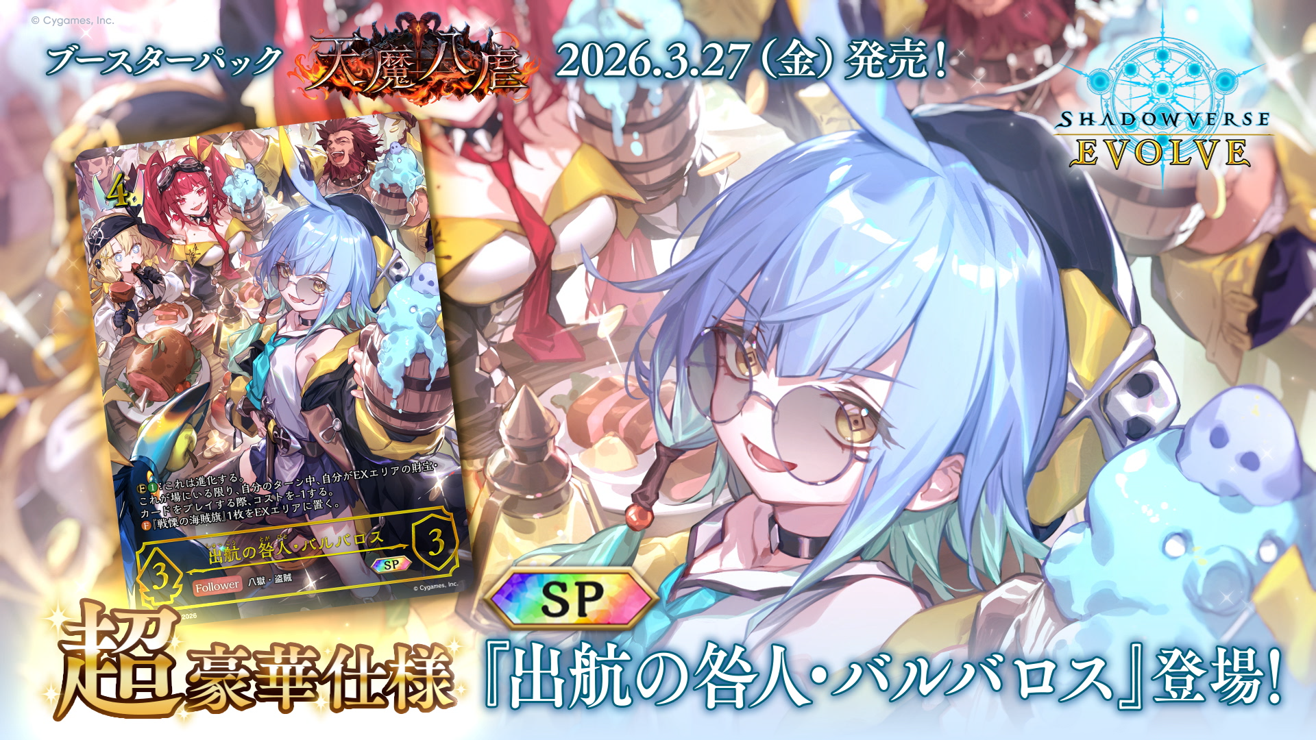 株式会社ブシロード(本社:東京都中野区、代表取締役社長:木谷 高明)と株式会社Cygames(本社:東京都渋谷区、代表取締役社長:渡邊 耕一)は、3月27日(金)に、『Shadowverse EVOLVE』より、ブースターパック「天魔八虐」を発売することをお知らせいたします。報道関係の皆様におかれましては、ぜひ誌面やWeb媒体で本情報をお取り上げいただけますようお願い申し上げます。