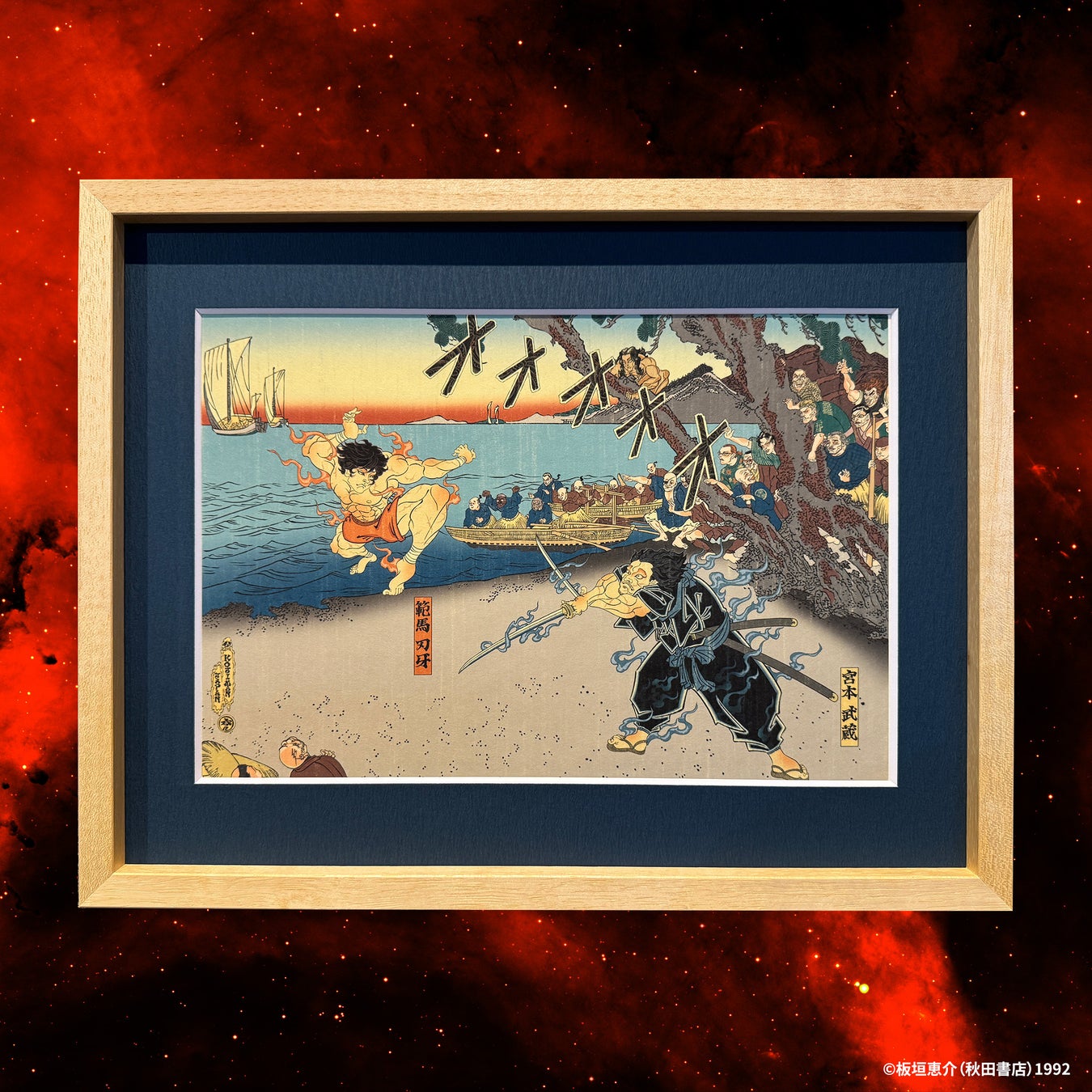 原作漫画『刃牙道』では、現代に蘇った剣豪・宮本武蔵と地下闘技場チャンピオン範馬刃牙が激突します。本作品ではその構図を浮世絵として再構築し、日本の伝統美術と現代格闘漫画の世界観を融合させたビジュアルとなっています。