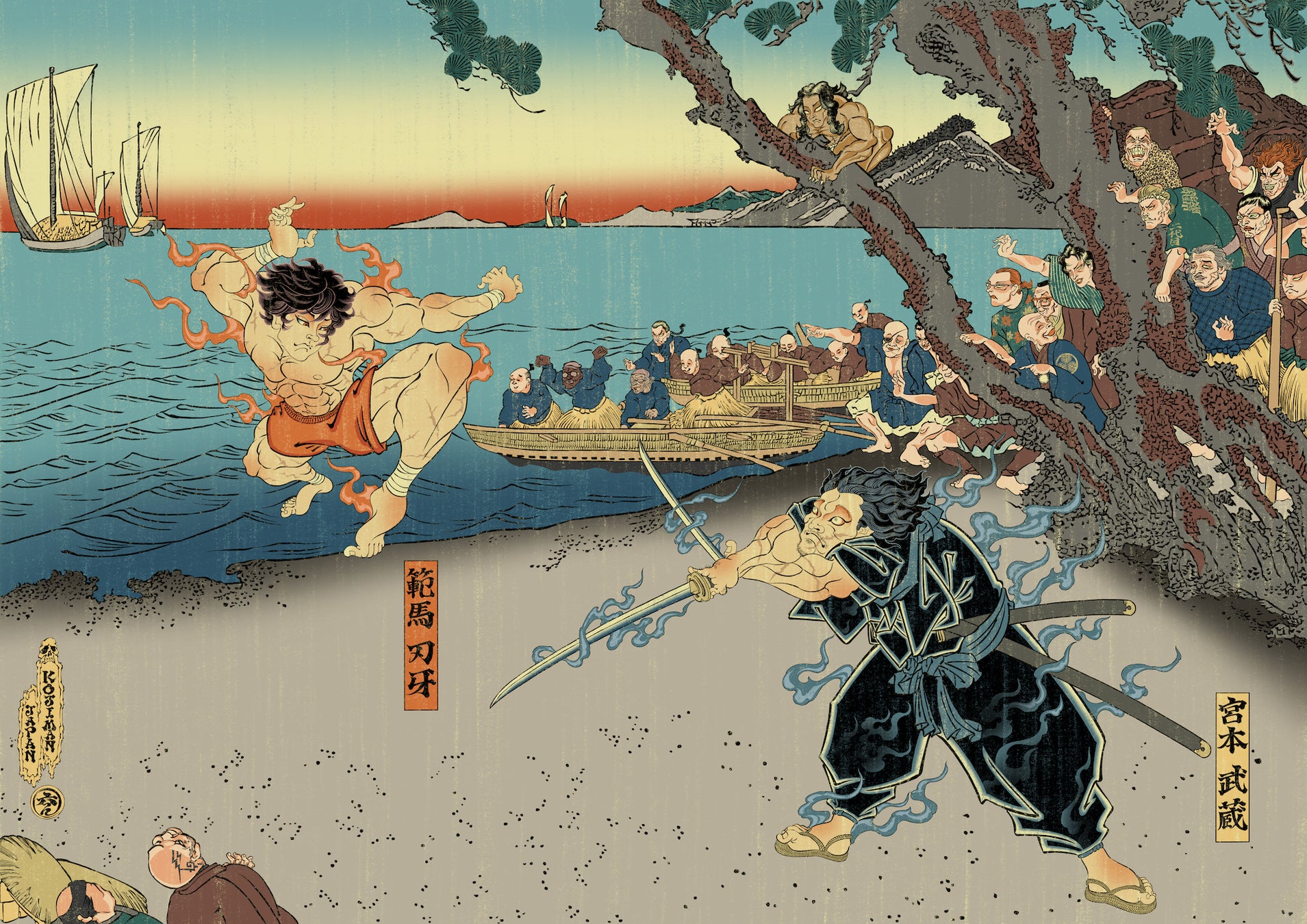 刃牙道浮世絵「九州岸柳島範馬刃牙宮本武蔵仕合之図」