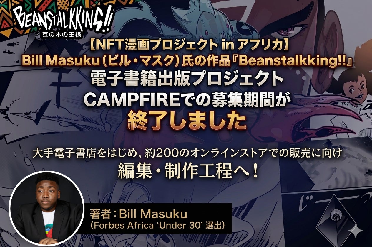 当社の子会社で審査制NFTローンチパッド「INO Fine」を運営する株式会社カイカフィナンシャルホールディングス(本社:東京都港区、代表取締役社長:鈴木 伸)は、株式会社実業之日本社 ライツ・事業開発部および株式会社実業之日本デジタルと協業し、アフリカの若き漫画家が日本で漫画家デビューに挑む「NFT漫画プロジェクト in アフリカ」において、アフリカ・ジンバブエ出身の漫画家 Bill Masuku(ビル・マスク)氏の電子書籍出版プロジェクトを実施してまいりました。