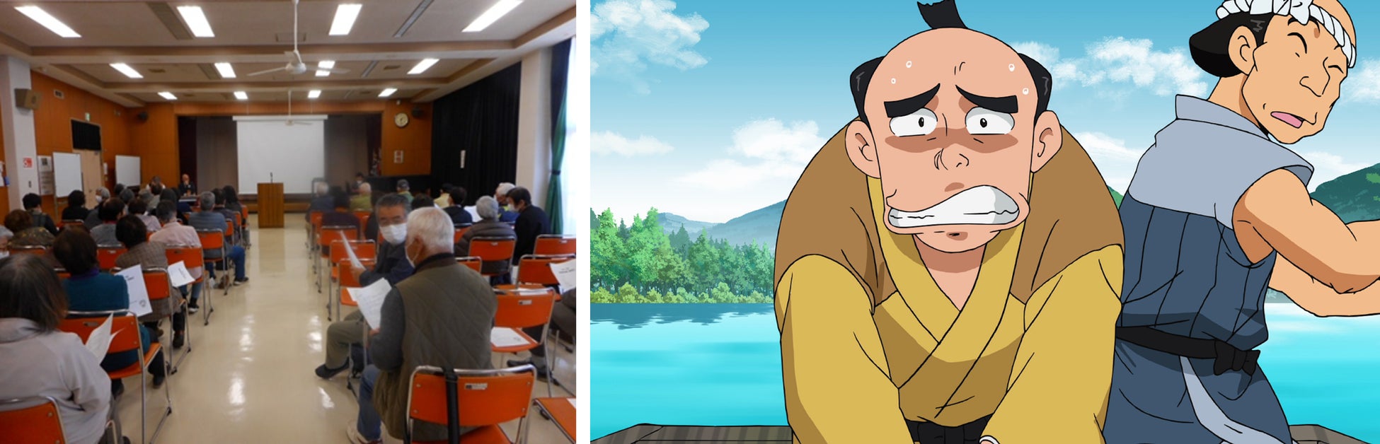 いわゆるオチのついた本民話は5分間という短さもあって受講者に大好評で、会場は爆笑の渦に包まれました。アニメーションを通じて地域の海と歴史の繋がりを伝えるとともに、川と海を繋ぐ文化への理解を深める一助となりました。