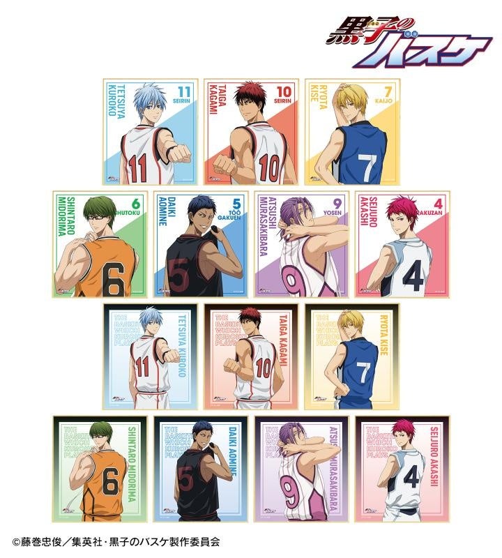 黒子テツヤ、笠松幸男、高尾和成、今吉翔一、氷室辰也、黛 千尋、花宮 真の描き下ろしイラストをミニ色紙に仕上げました。