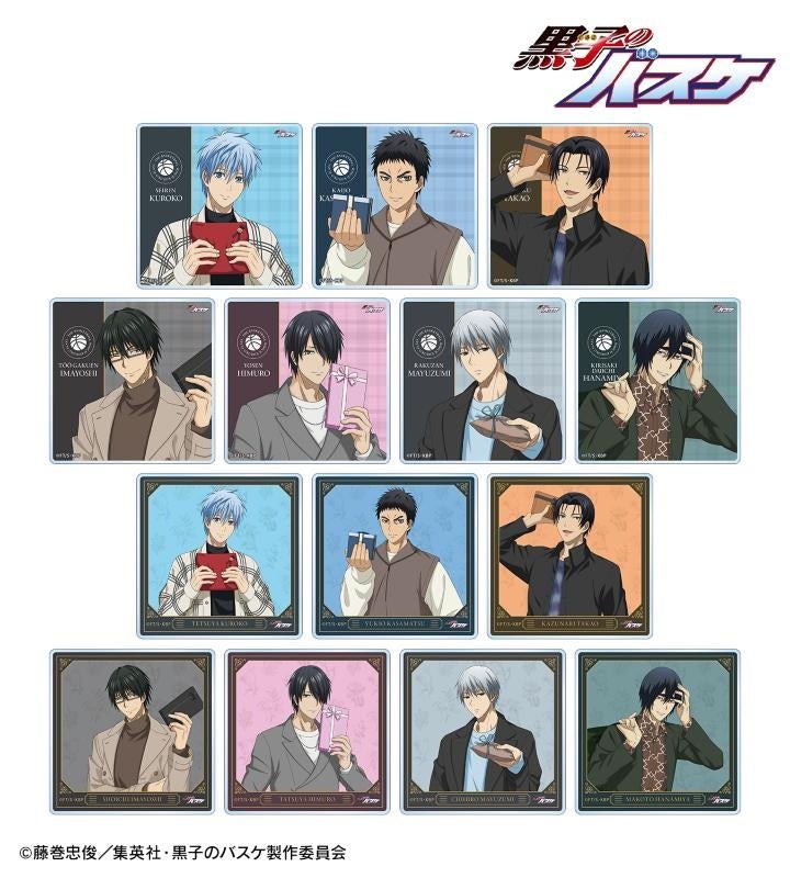 黒子テツヤ、笠松幸男、高尾和成、今吉翔一、氷室辰也、黛 千尋、花宮 真の描き下ろしイラストをアクリルコースターに仕上げました。