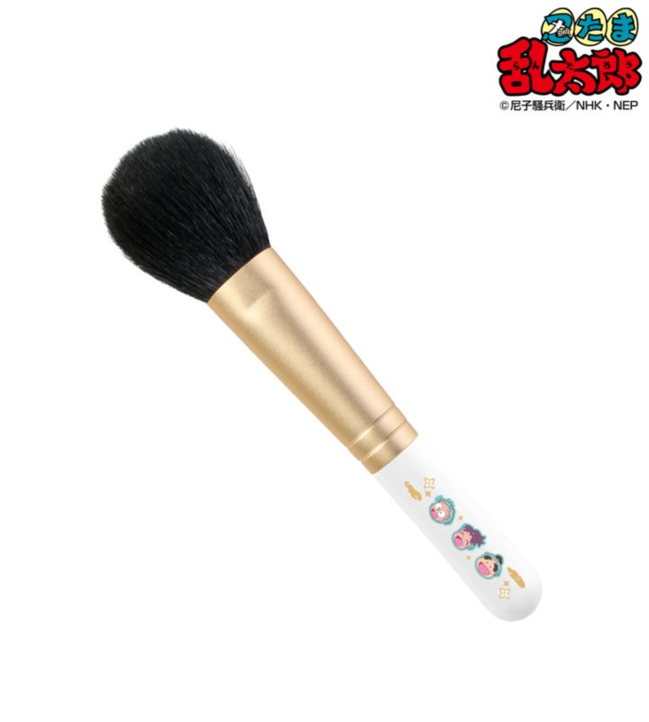 猪名寺乱太郎、摂津のきり丸、福富しんベヱ、久々知兵助、尾浜勘右衛門、不破雷蔵、鉢屋三郎、竹谷八左ヱ門、潮江文次郎、立花仙蔵、中在家長次、七松小平太、善法寺伊作、食満留三郎のミニキャライラスト、各キャラクターのモチーフをチークブラシに仕上げました。