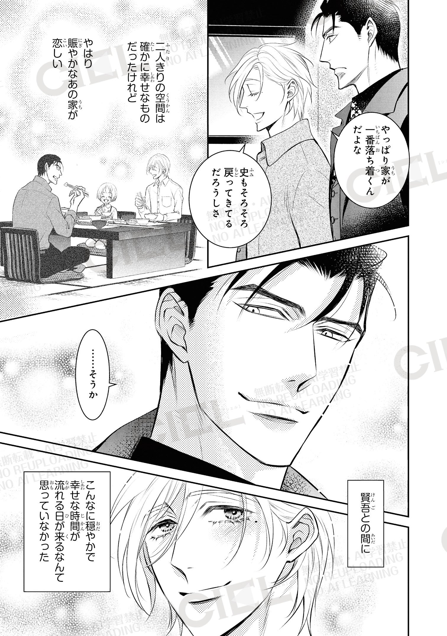 極道さんシリーズは電子BL雑誌「電子版CIEL」にて連載中の、幼馴染みの極道・賢吾(けんご)と美形医師の佐知(さち)が訳ありの子ども・史(ふみ)を育てるファミリーBLです。