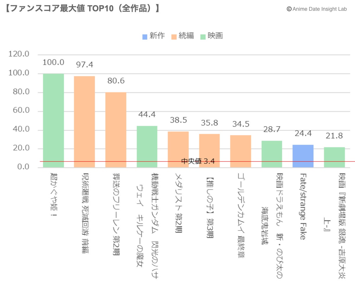 テレビアニメは毎週の放送が「語るきっかけ」を定期的に供給できる。映画は公開という一回のイベントに集約される。その構造的なハンデを超えてファンスコア1位を取った事実は、それだけでも注目に値する。詳しくは後のセクションで分析する。