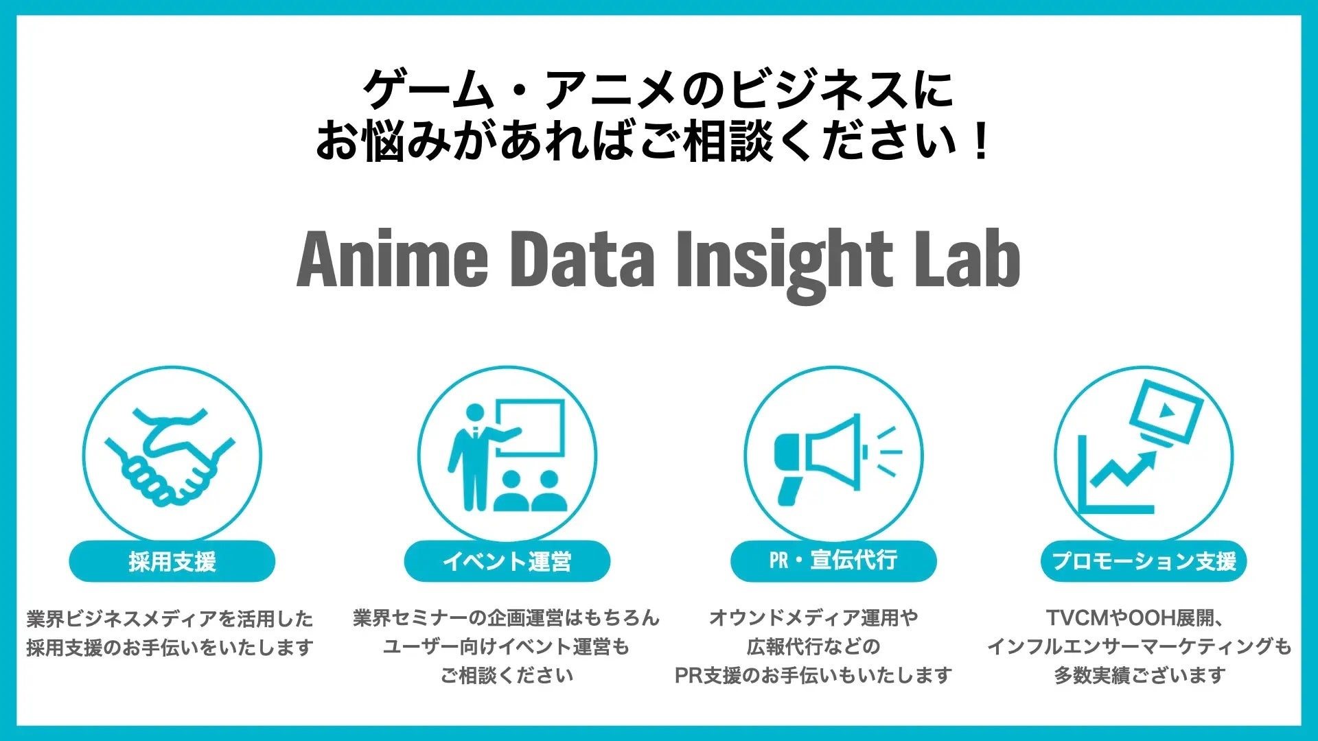 またアニメデータインサイトラボでは、今後もアニメビジネスに携わる人々に役立つ情報やサービスも提供していきます。