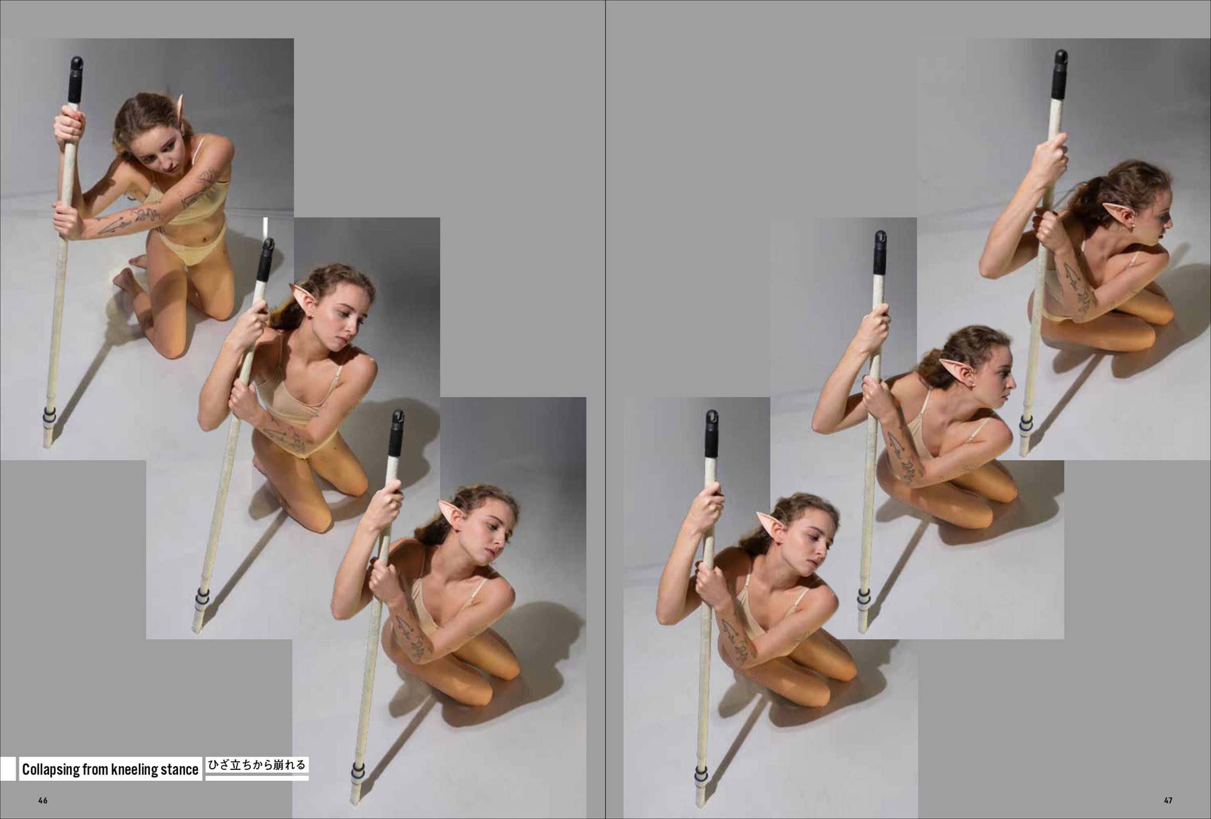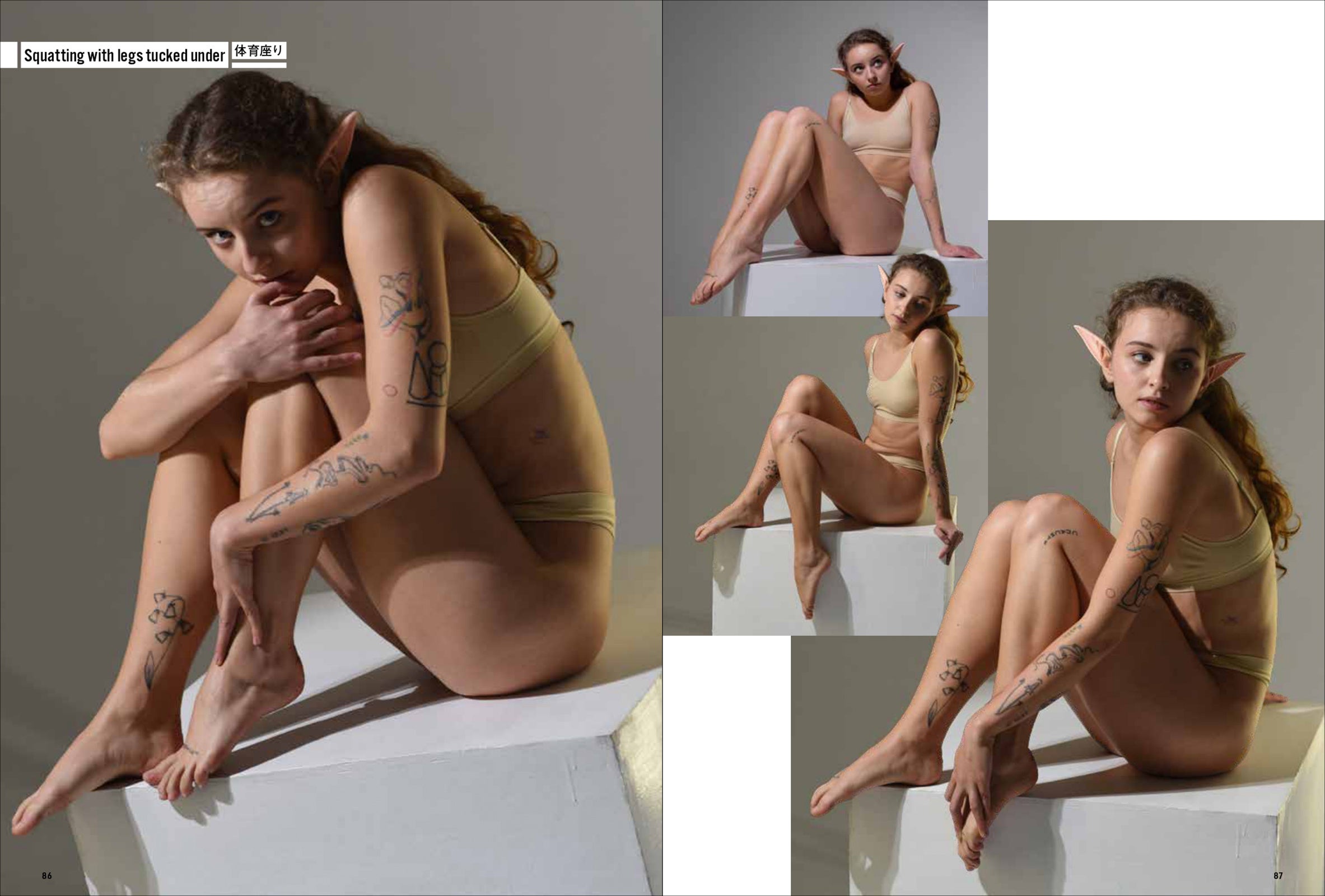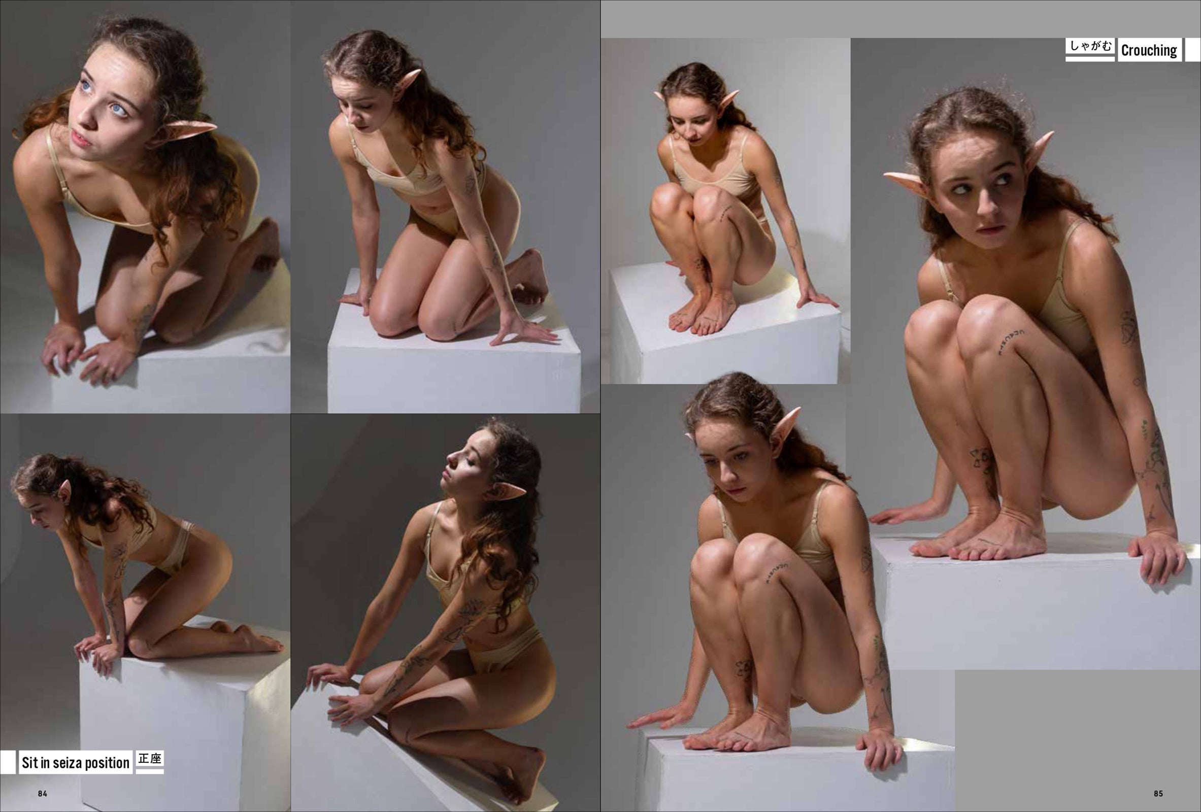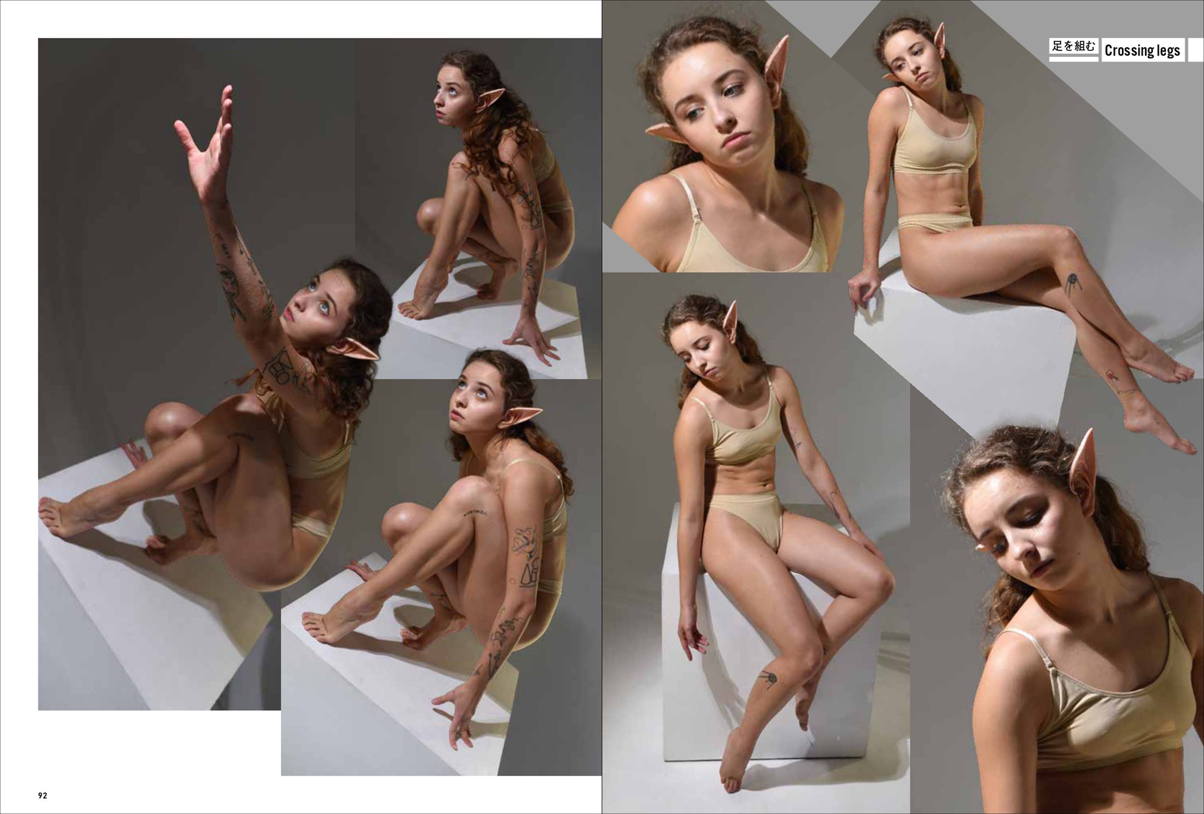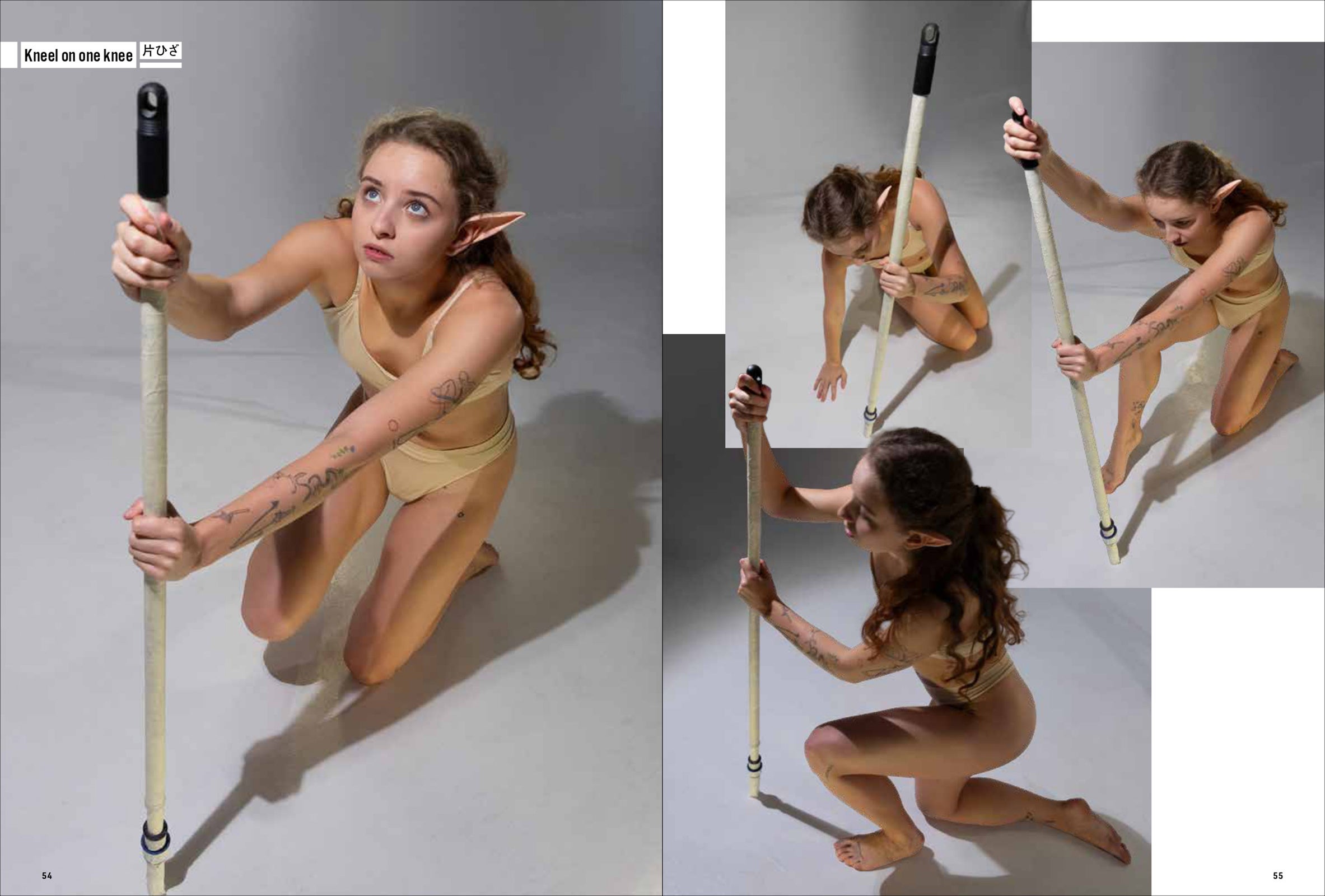 第一弾は「妖精・エルフ」。エルフの耳をつけて動き、様々なポーズをあおり、ふかん、連写など複数の画角で撮影しています。描くのが難しい「エルフ耳」の向きや位置も本書では一目瞭然。輪郭ラインのわかる水着と鍛えた筋肉で、戦うポーズから水辺でくつろぐポーズまで、バリエーション豊かなシチュエーションと動きを網羅します。