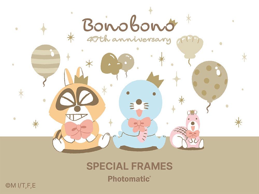 セルフフォトブース「Photomatic」に、ぼのぼののコラボフレームが登場!前回のコラボフレームに加え、ぼのぼのの40周年をお祝いする新デザインのフレームが登場します!全4種類のフレームは、2026年5月11日(月)より提供スタートです!遊び心に満ちたぼのぼのフレームで、アニバーサリーの記念に撮影してみてください!