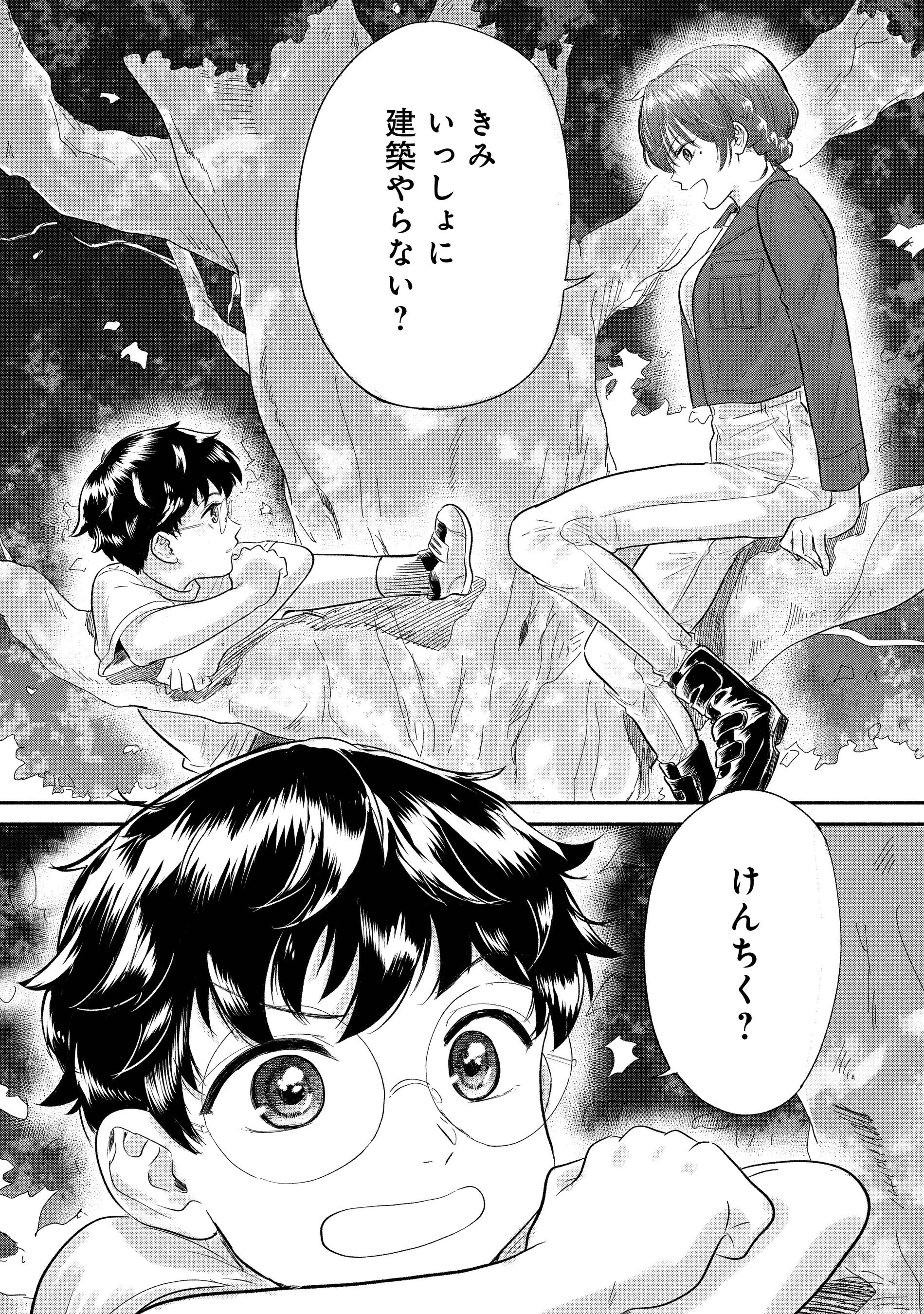 沖縄に住む阿原屋創太は、人付き合いが苦手な小学生。唯一心を開く兄とキャッチボールをしていた空き地に公民館ができると知って、ひとり反対運動を起こそうとする。そんな彼が出会ったのは、自由奔放な建築家・鉄村麗子。彼女との出会いをきっかけに「建築」の面白さに目覚めた創太は、建築家になるという夢を抱き、東京の名門大学の建築学科に入学するが――。