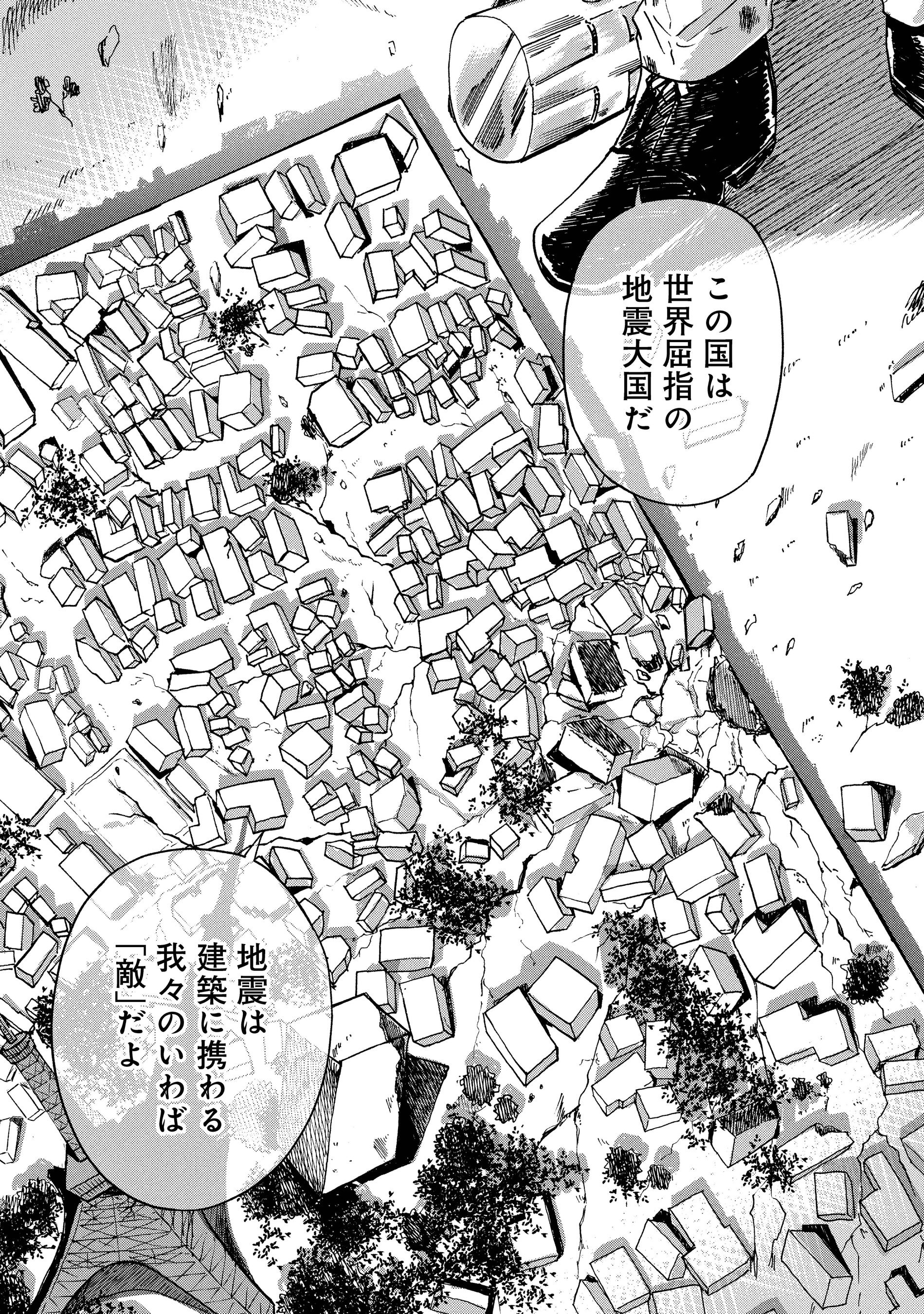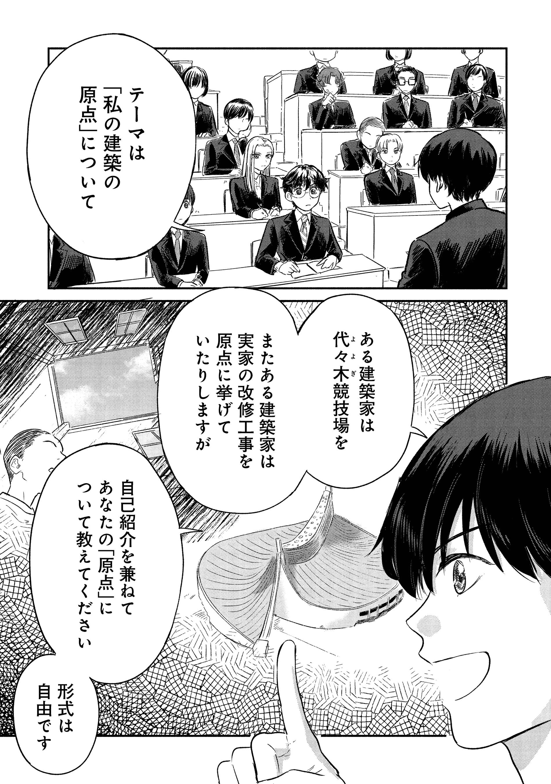 本作の舞台は、東京の大学にある建築学科。「地震によって壊れない建物をつくるにはどうすれば良いのか?」「建築と建設の違いは?」「現代の住宅の原型は?」など、さまざまな建築課題を学びながら、主人公・阿原屋創太の成長を描く本格青春ストーリーです。