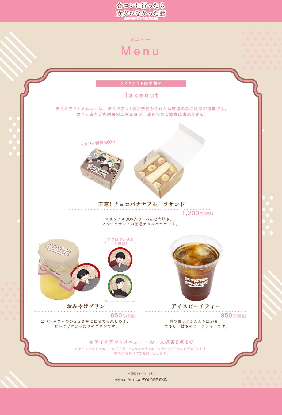 「合コンに行ったら女がいなかった話」Collaboration Cafeの前半期間【4月29日(水・祝)〜6月4日(木)】に提供するメニューをご紹介いたします。