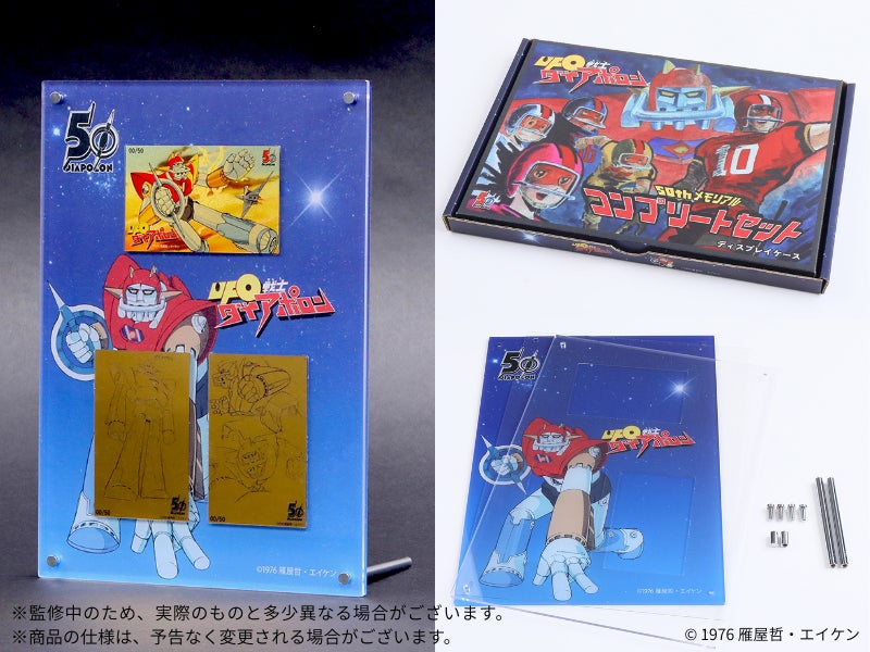 当時のメインビジュアルや設定資料をもとに制作された純金カード3種を、オリジナルディスプレイケースで楽しめる50周年記念メモリアルコンプリートセットが登場。