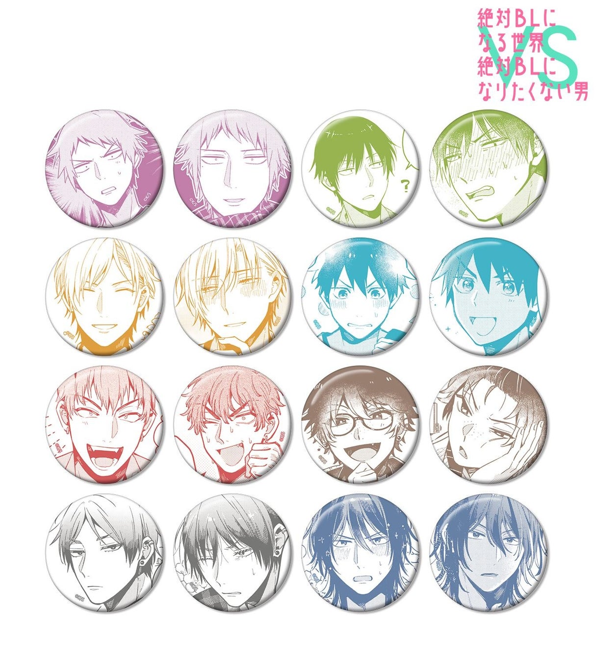主人公、綾人、東條、柳、三郷、真山、水元、旗野の原作コマを缶バッジに仕上げました。