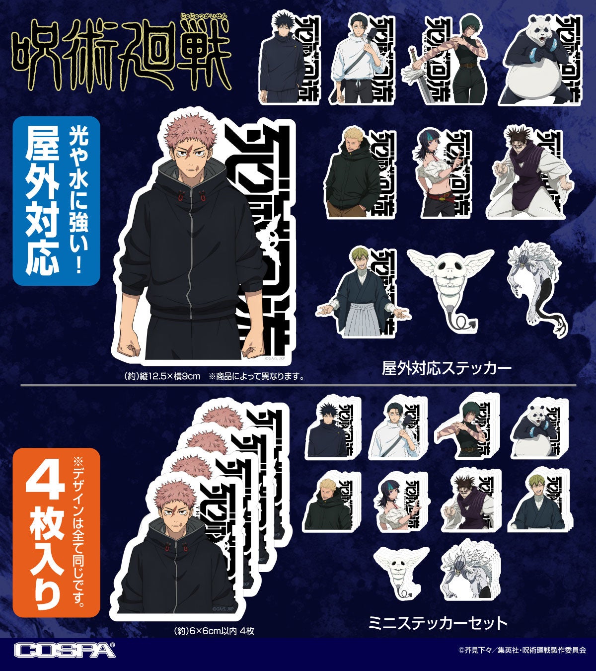 TVアニメ『呪術廻戦』より、「死滅回游」虎杖 悠仁、伏黒 恵たちの「パスケース」をはじめ、「死滅回游 泳者(プレイヤー) Tシャツ」、乙骨 憂太、禪院 真希、パンダそれぞれの「ステッカー」など新グッズがCOSPA(コスパ)から登場です。