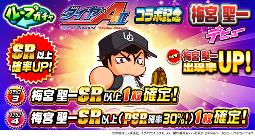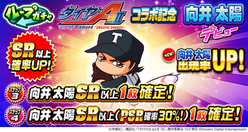 株式会社コナミデジタルエンタテインメントは、モバイルゲーム『実況パワフルプロ野球』(以下、『パワプロアプリ』)と人気アニメ『ダイヤのA actⅡ-Second Season-』とのコラボレーションを本日4月6日(月)から開始したことをお知らせします。