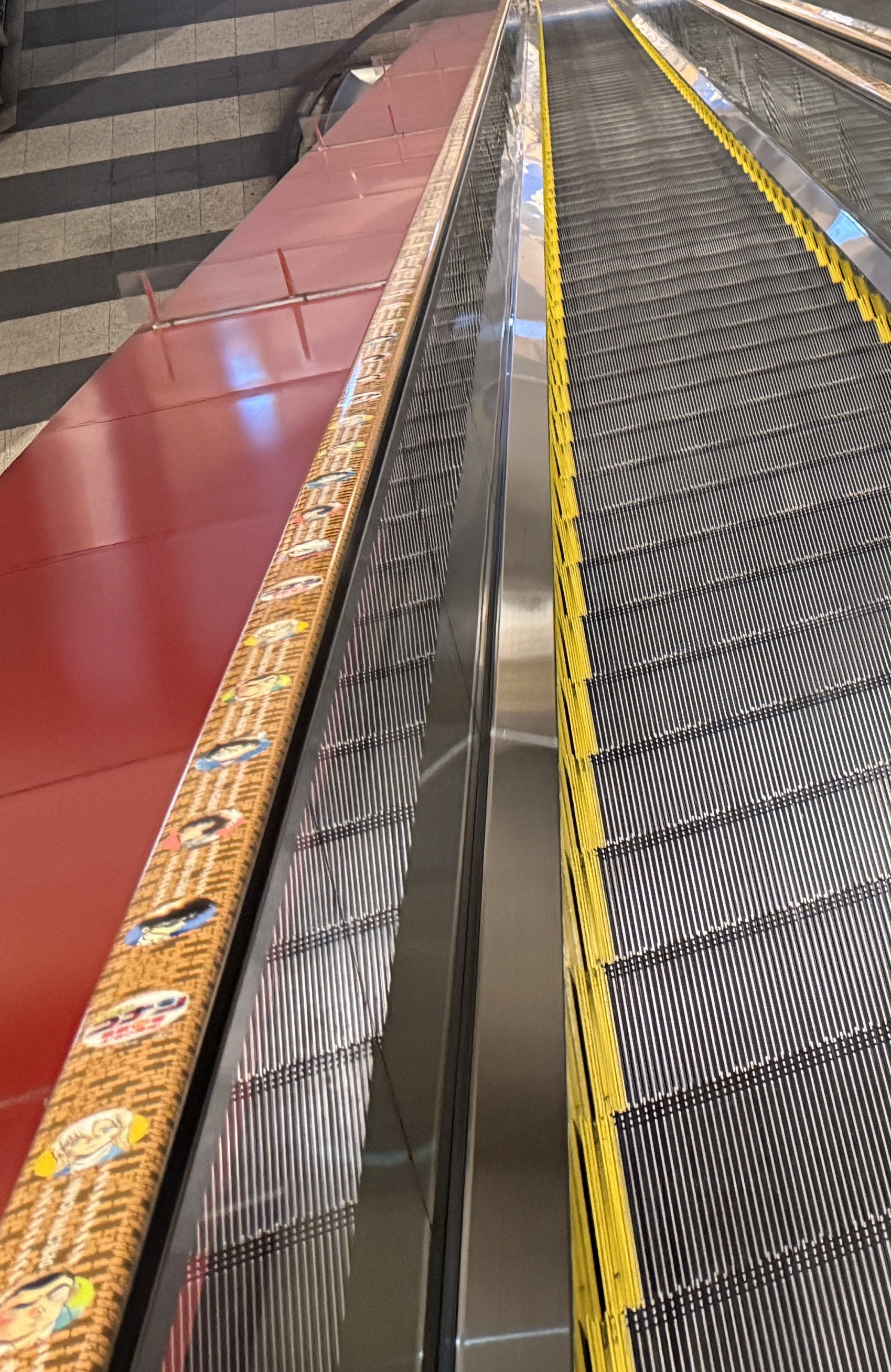 みなとみらい駅改札の地下から地上までの約82mの長ロングなエスカレーター3基の手すりに原作のコナン君イラストと、劇場版キャラクターイラストが左右でそれぞれ全10キャラが配置されています。