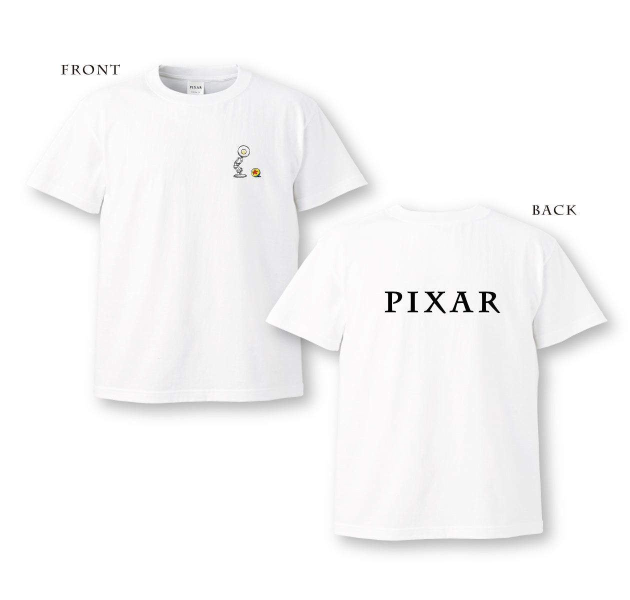 胸元にピクサーランプ、背面にピクサーロゴをあしらった普段使いしやすいデザイン!