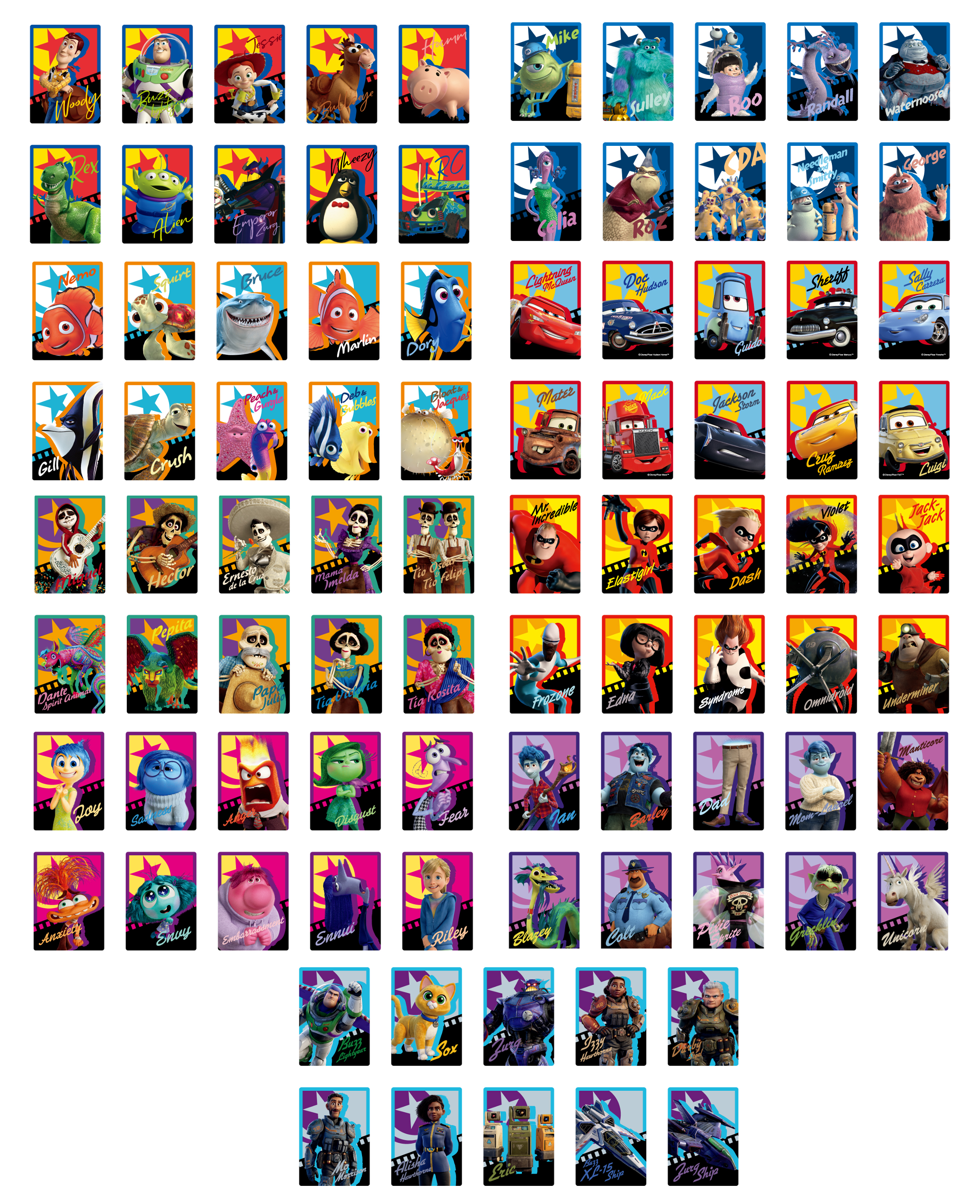 1セット10枚入り!専用の台紙付きで、ピクサーのキャラクターたちをコレクションして楽しめる!