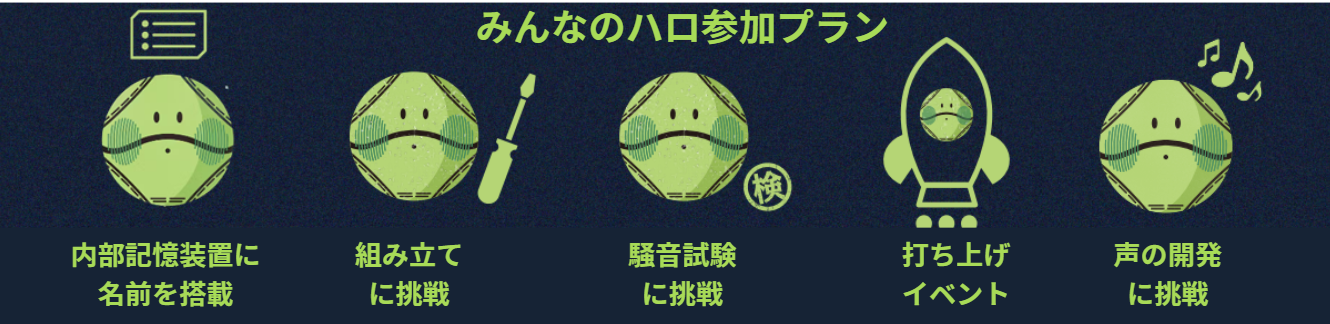 ガンダムをしらない世代のみなさまにも、「みんなのハロ」の直感的な分かりやすさと親しみやすさを入口に、専門知識の有無に関わらず、多くの人に関心を持っていただき、宇宙開発に関わるきっかけを創出したいという思いが込められています。