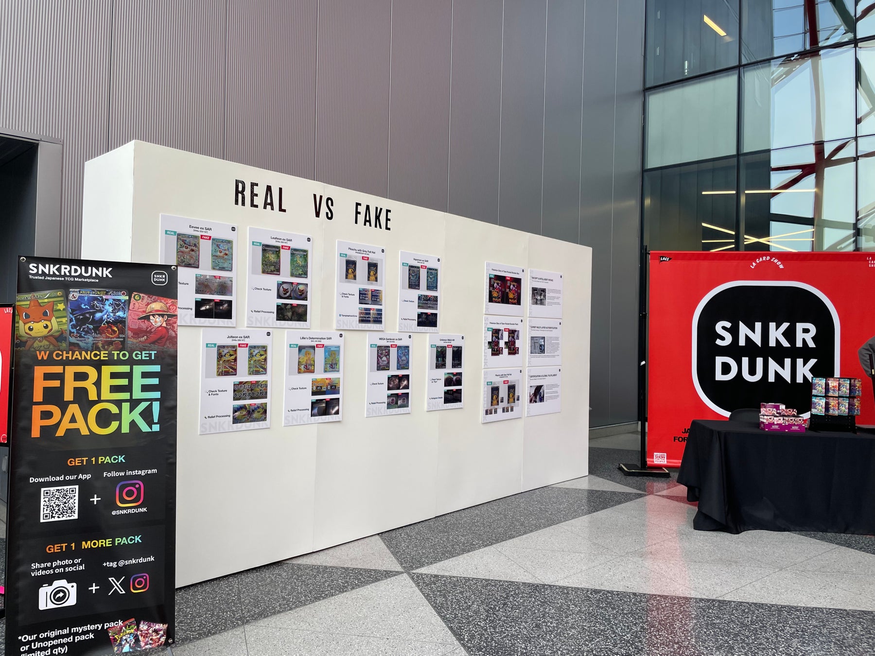 「SNKRDUNK(スニーカーダンク)」(以下、スニダン)を運営する株式会社SODA(以下、SODA)は、現地時間2026年3月28日(土)にアメリカ・ロサンゼルスのIntuit Dome(以下、インテュイット・ドーム)で開催されたアメリカ最大級のトレーディングカード&カルチャーの祭典「LA Card Show」に、昨年に引き続き(※1)、日本企業として唯一ブース出展をおこないました。実際の偽造品の展示や鑑定体験ができるブースを設置し、アメリカでも急拡大するポケモンカードの偽造品への意識を啓発しました。スニダンが提供する最新の真贋鑑定技術に、来場者から高い評価をいただき、スニダンのサービスおよび真贋鑑定への関心・信頼を高めることができました。