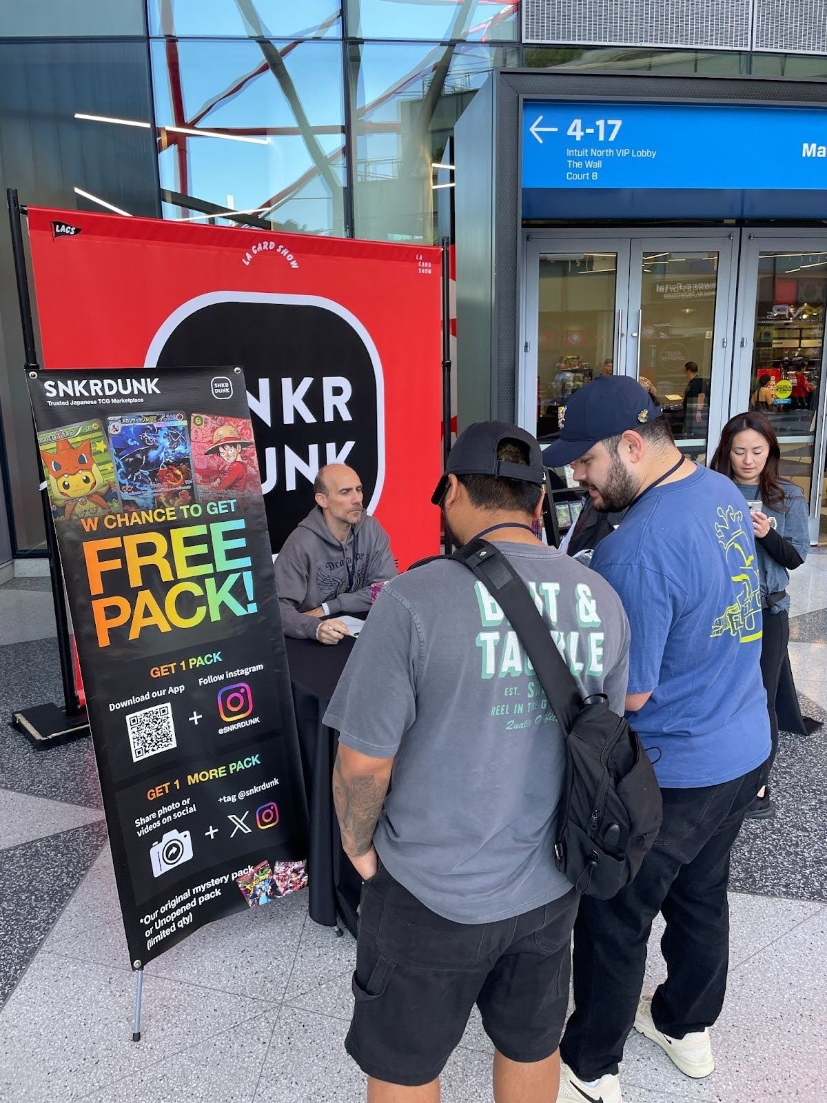 「SNKRDUNK(スニーカーダンク)」(以下、スニダン)を運営する株式会社SODA(以下、SODA)は、現地時間2026年3月28日(土)にアメリカ・ロサンゼルスのIntuit Dome(以下、インテュイット・ドーム)で開催されたアメリカ最大級のトレーディングカード&カルチャーの祭典「LA Card Show」に、昨年に引き続き(※1)、日本企業として唯一ブース出展をおこないました。実際の偽造品の展示や鑑定体験ができるブースを設置し、アメリカでも急拡大するポケモンカードの偽造品への意識を啓発しました。スニダンが提供する最新の真贋鑑定技術に、来場者から高い評価をいただき、スニダンのサービスおよび真贋鑑定への関心・信頼を高めることができました。