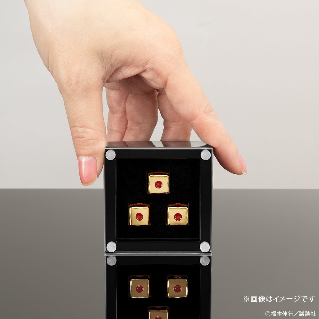 【限定100個】 ざわ・・ざわ・・ 帝愛の地下帝国で行われる賭博・・・ ファンであれば誰もが知っているあの「特殊サイコロ」を熟練のジュエリー職人がシルバー素材で再現しました。 どの面も「1」・・・少しいびつな形状・・・これを手にすればきっと「振りたくなる」こと間違いなし?! 特製の木製コレクションケースに入れてお渡しします。 そして・・・帝愛グループの金箔ペリカを一枚付属。 何かあった時のための“切り札”に──。 |