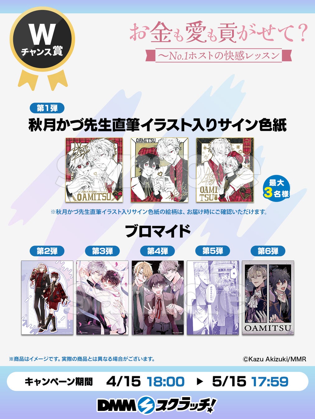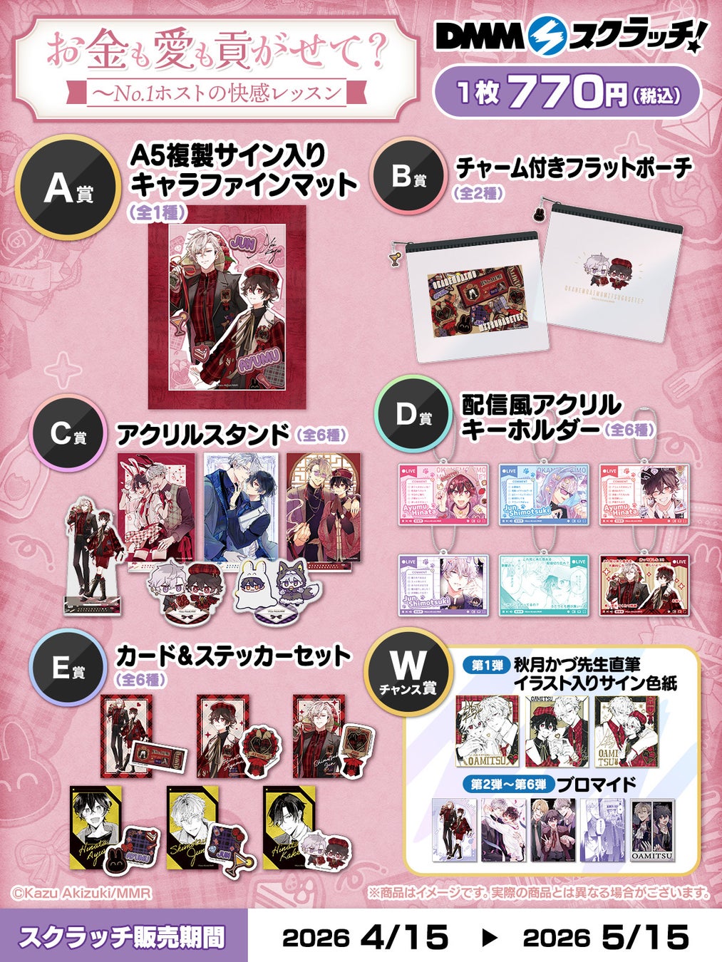 本スクラッチでは、秋月かづ先生(@akiduki_kd)の描き下ろしイラストを使用したグッズをはじめ、DMMスクラッチ限定アイテムなど、多彩な賞品ラインナップを予定しております。