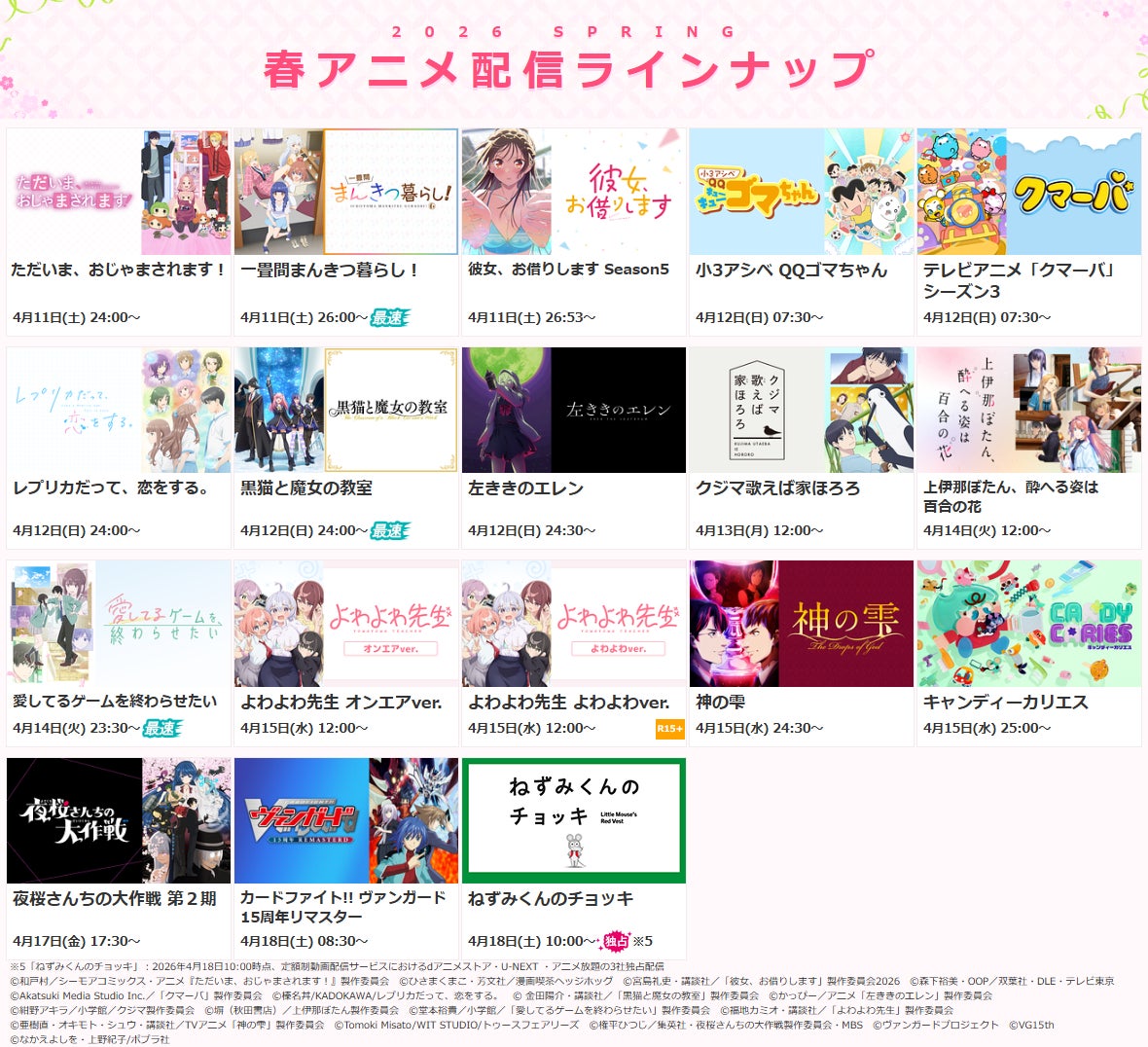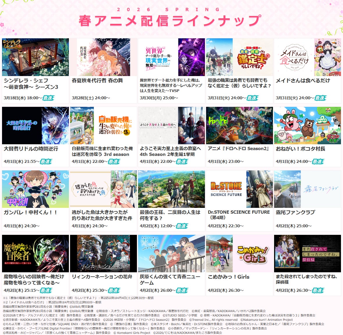 ※詳細は次項目「■2026春アニメ・配信決定一覧」 及び ラインナップページをご確認ください