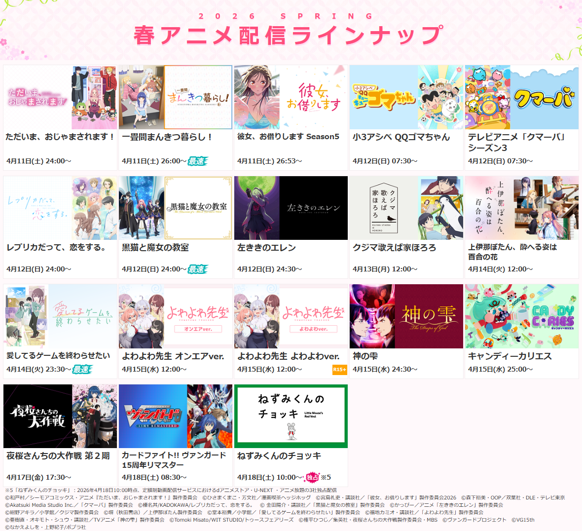 ※詳細は次項目「■2026春アニメ・配信決定一覧」 及び ラインナップページをご確認ください