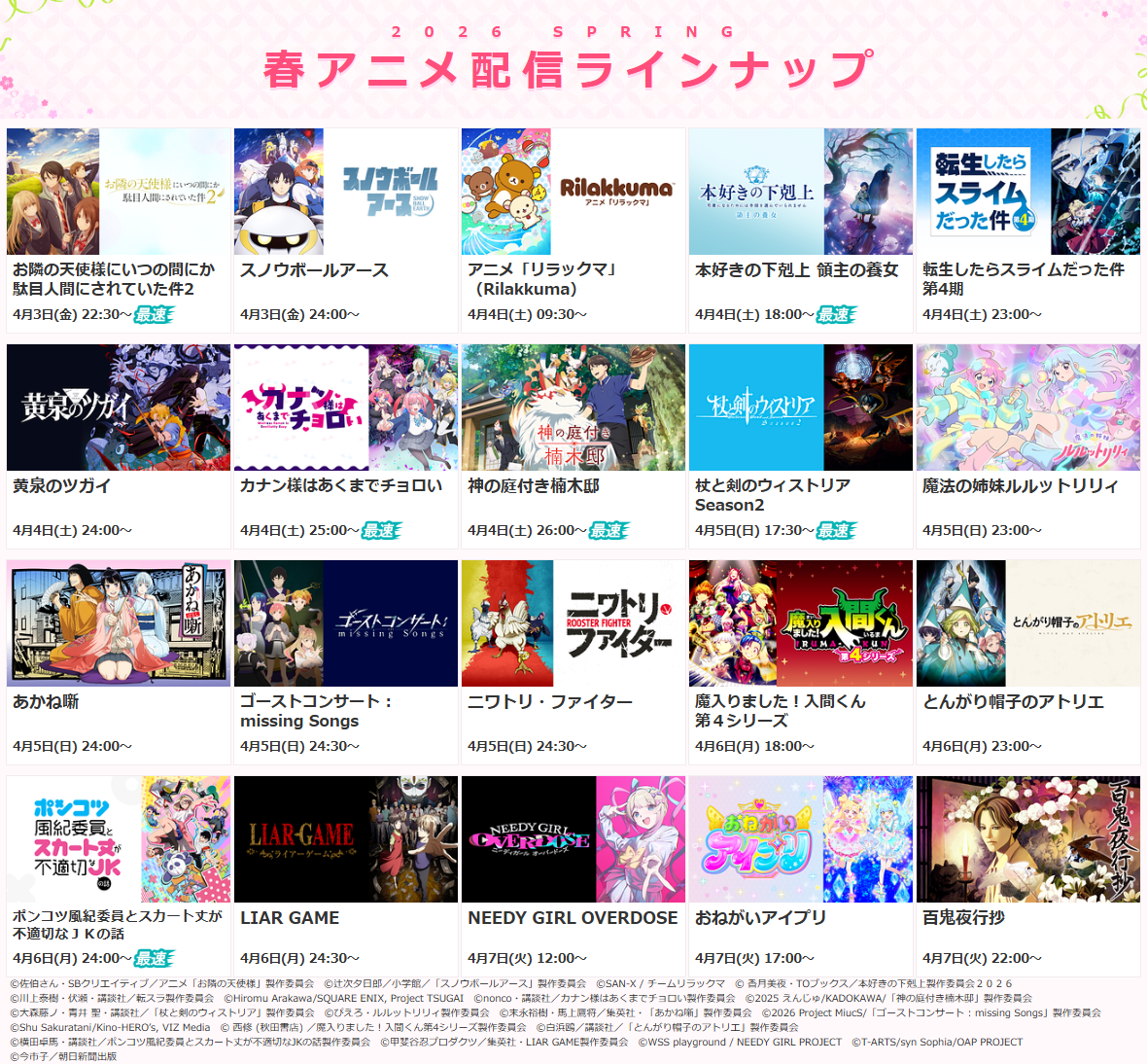 ■2026春アニメ・配信決定一覧 (※2026年4月8日時点)