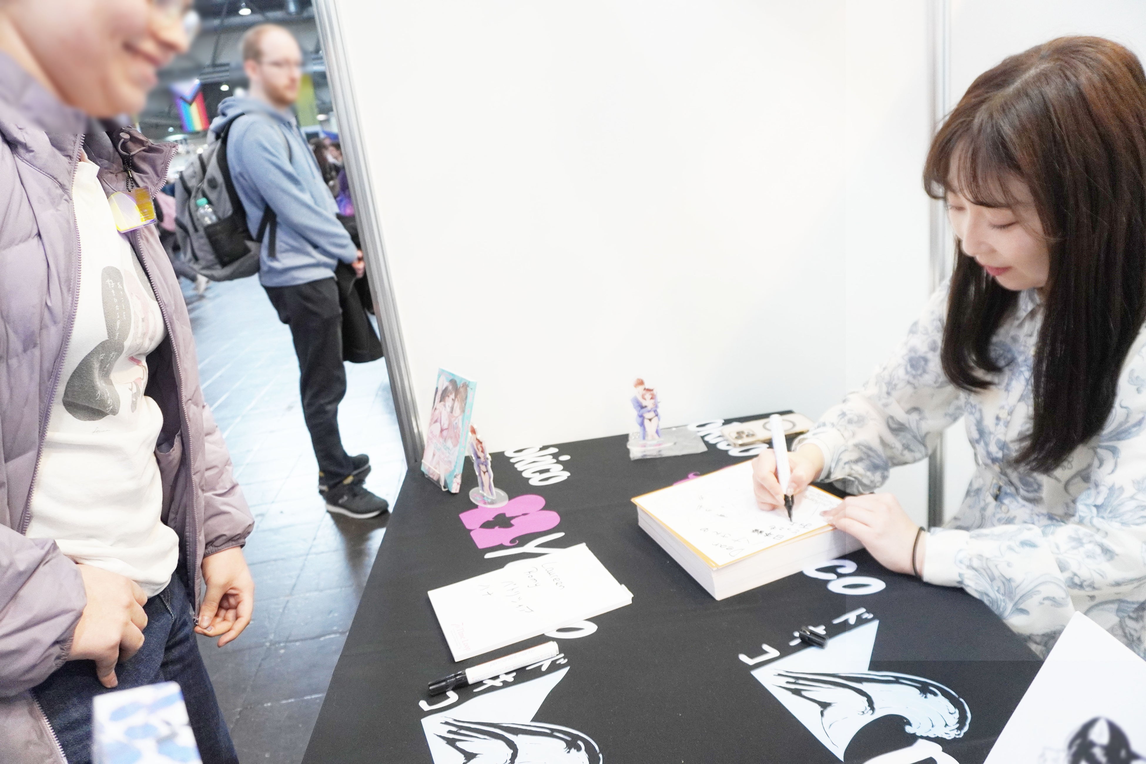 「Koibana」は“恋愛(ロマンス)”というジャンルに特化しており、かつ18歳以上に限定することで、より深い作品解説や大人向けの表現を扱える場となっているのが特徴です。「Koibana 2026」では、嶋永氏によるサイン会と漫画制作プロセスに関するワークショップが行われました。同イベントは、当社および、嶋永氏の作品ジャンルとの親和性が高く、イベント限定で販売されたドイツ語版コミックスと関連グッズは完売するなど、高い購買意欲が見られました。また、多くのファンやクリエイターが来場し、作品の世界観を軸とした深い交流が行われました。