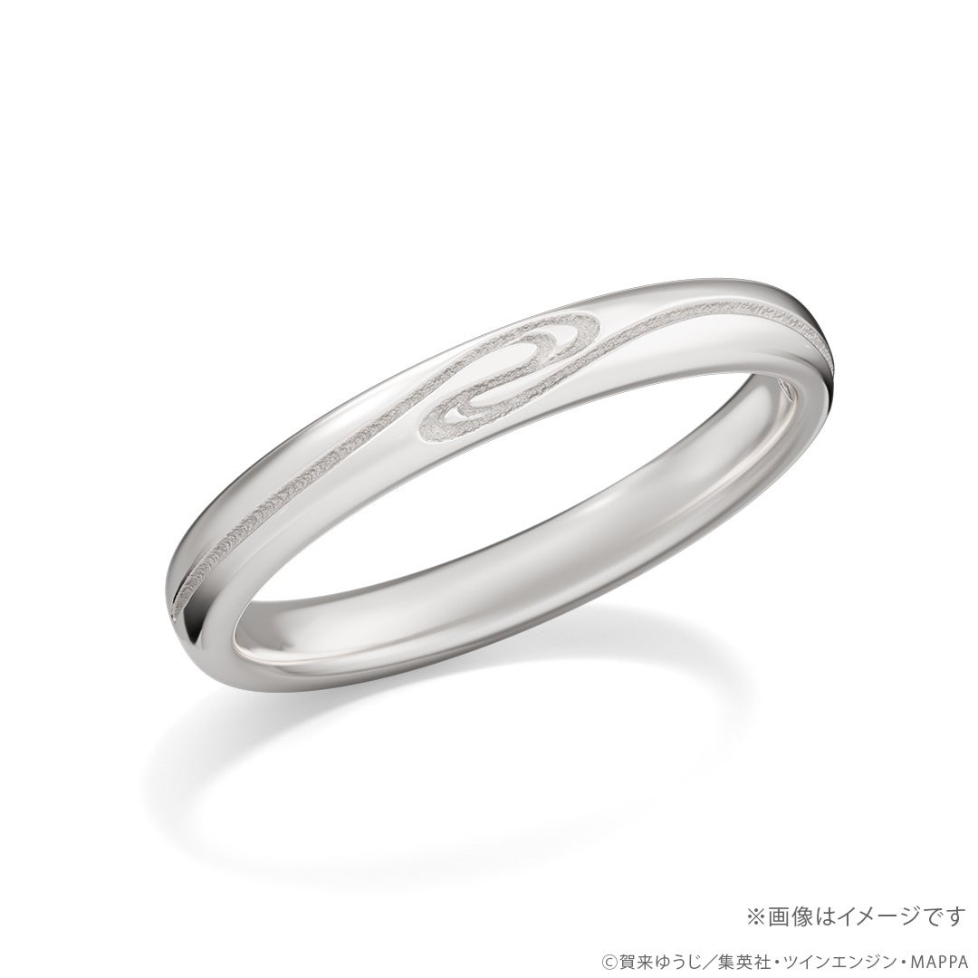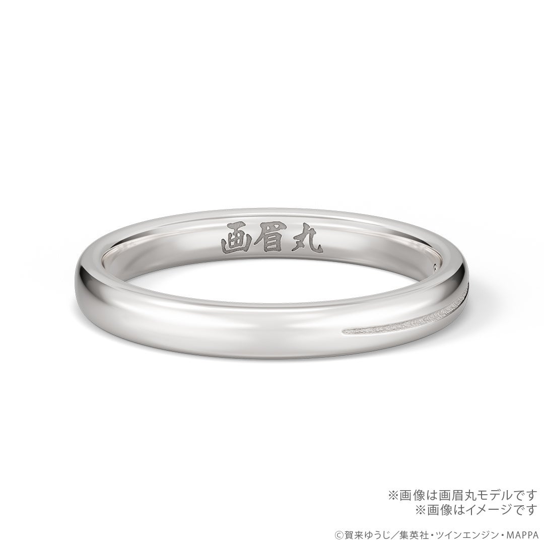 TVアニメ『地獄楽』の魅力的なキャラクターたちをモチーフにしたリング。 表側は、神仙郷に漂う美しくも妖しい雰囲気を、曲線的な彫り模様で表現したシンプルなデザインです。 内側には「画眉丸」「佐切」「弔兵衛」「桐馬」「杠」など、27名の中から選んだキャラクターの名前を刻印します。 素材はカジュアルな服装にも合わせやすいシルバー925と、心地のいい重さと上品な輝きが特徴のプラチナ950の全2種類。 別売りのアクリルリングスタンドに飾っても、お楽しみいただけます。 |