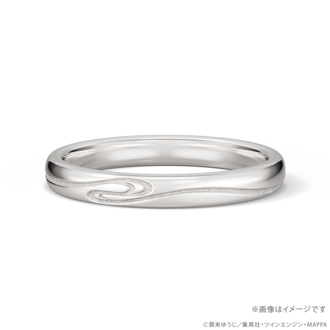 TVアニメ『地獄楽』の魅力的なキャラクターたちをモチーフにしたリング。 表側は、神仙郷に漂う美しくも妖しい雰囲気を、曲線的な彫り模様で表現したシンプルなデザインです。 内側には「画眉丸」「佐切」「弔兵衛」「桐馬」「杠」など、27名の中から選んだキャラクターの名前を刻印します。 素材はカジュアルな服装にも合わせやすいシルバー925と、心地のいい重さと上品な輝きが特徴のプラチナ950の全2種類。 別売りのアクリルリングスタンドに飾っても、お楽しみいただけます。 |