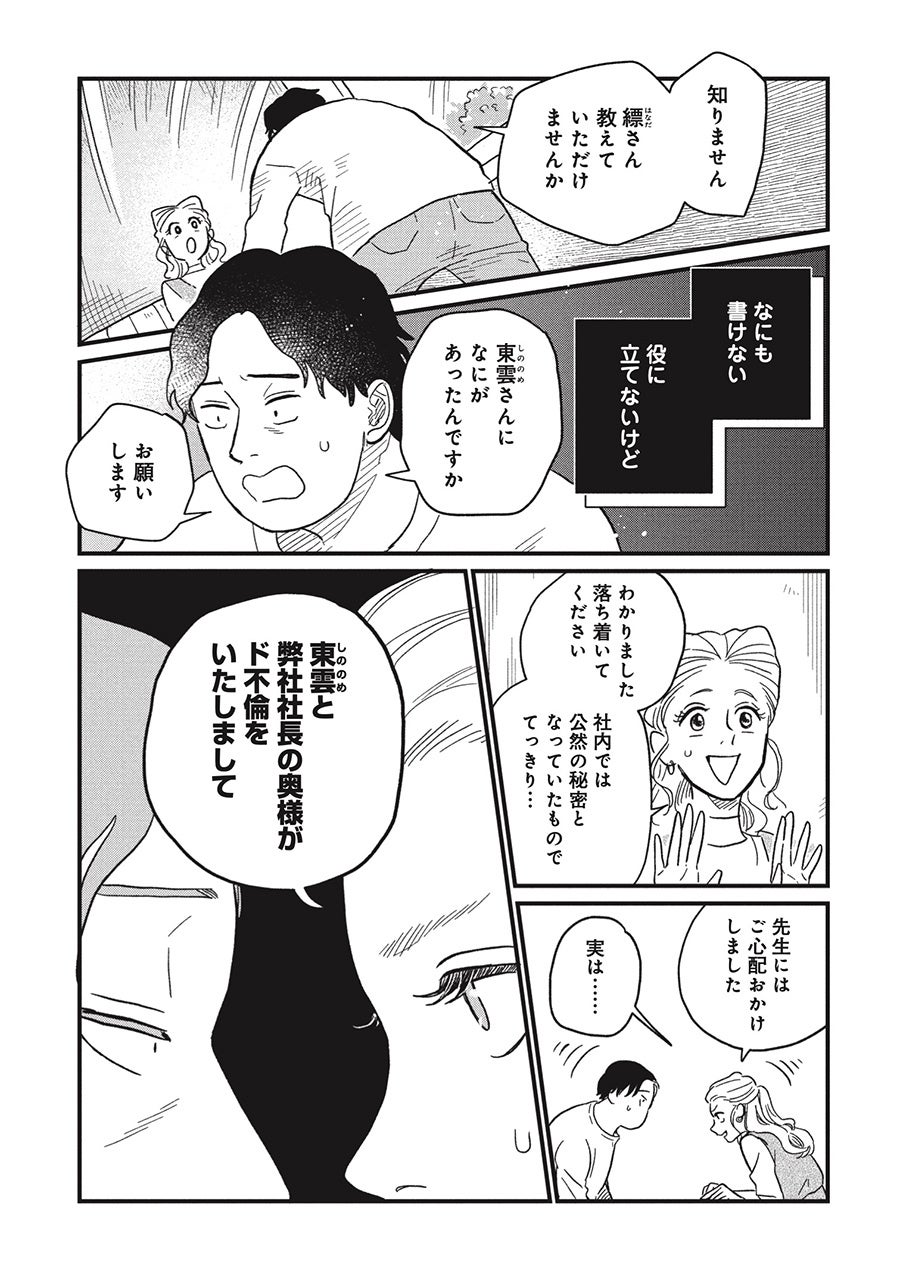 主人公は、デビュー作のヒット後に無気力となり、書けなくなってしまったスランプ小説家・空五倍子唯生(うつぶし ただお)。新たに担当となった新米文芸編集・縹(はなだ)ちとせが提案する型破りなリハビリプランに振り回されながらも再び書くことに向き合い、新作執筆を目指す日々が始まります。