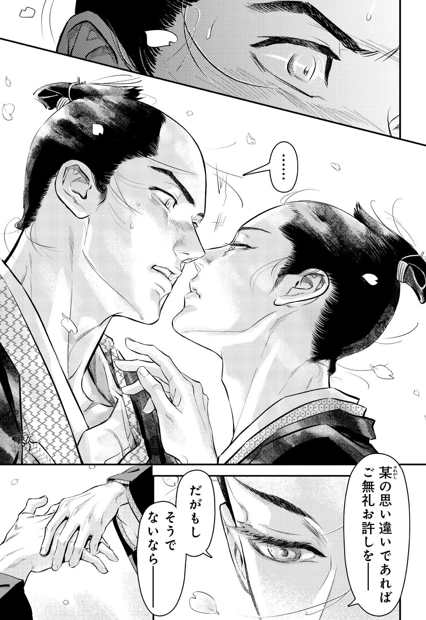武士、刀剣、その闇、切腹、介錯人、男同士の愛憎… 自分の嗜好を詰め込んで、江戸の町や武家屋敷から調度品、光と影、その中で絡む二人…等々 絵も細部まで贅沢に描かせて貰いました。(時間もかかって〆切に泣いてますが…)