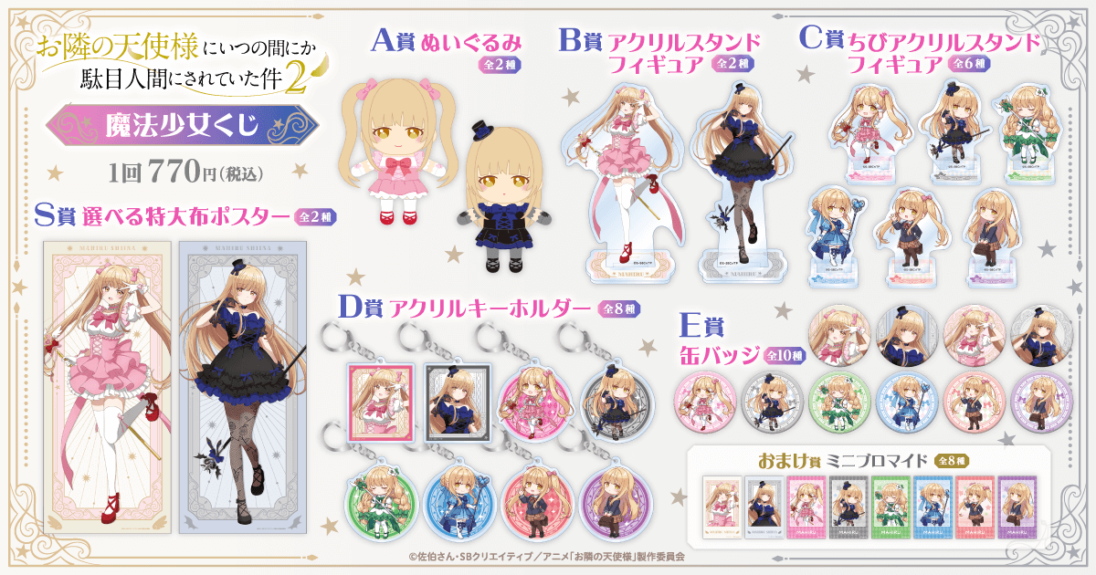 株式会社KADOKAWA(本社:東京都千代田区、取締役 代表執行役社長 CEO:夏野 剛、以下 KADOKAWA)は、運営するオンラインくじサービス「くじ引き堂」において、「お隣の天使様にいつの間にか駄目人間にされていた件2」の豪華賞品が手に入る<「お隣の天使様にいつの間にか駄目人間にされていた件2」魔法少女くじ>を、2026年4月16日(木)12時より販売します。