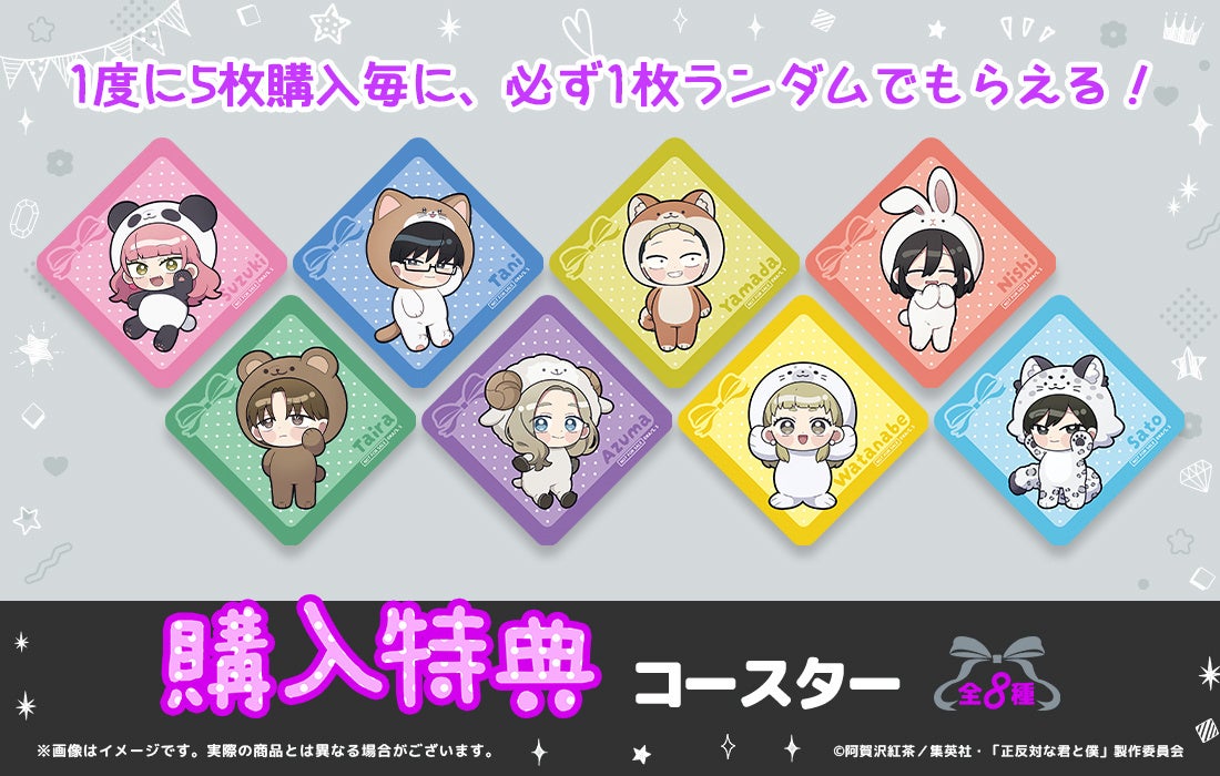 TVアニメ『正反対な君と僕』より、描き下ろしイラストを使用した限定グッズが当たるTVアニメ『正反対な君と僕』 WEBくじが登場!「WEBくじ出張所」として全国の販売店舗と、オンラインくじサイト「WEBくじ」にて販売中となっております。