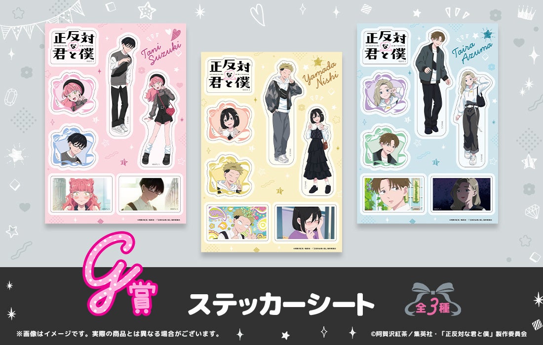 TVアニメ『正反対な君と僕』より、描き下ろしイラストを使用した限定グッズが当たるTVアニメ『正反対な君と僕』 WEBくじが登場!「WEBくじ出張所」として全国の販売店舗と、オンラインくじサイト「WEBくじ」にて販売中となっております。