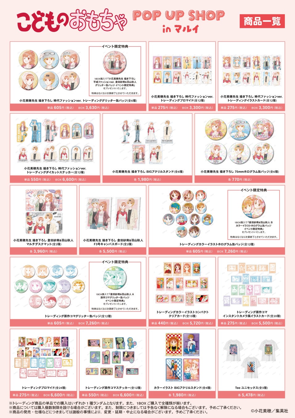 今回のイベントでは小花美穂先生による「平成と令和のファッション」をコンセプトにした新規描き下ろしイラストや原作イラストを使用した新規グッズを多数先行販売する他、イベント購入特典の配布やスタンディパネルの展示を予定しております。
