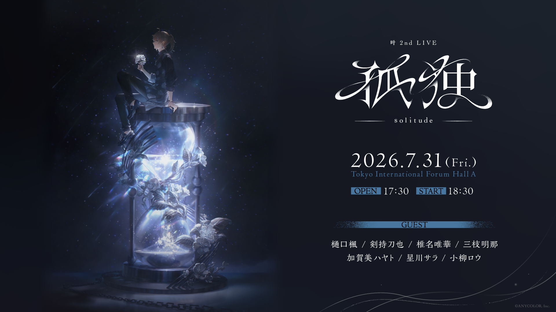 ANYCOLOR株式会社(本社:東京都港区 代表取締役:田角陸、以下「当社」)が運営するVTuber / バーチャルライバーグループ「にじさんじ」は、「叶 2nd LIVE 孤独 -solitude-」の最新情報をお伝えします。