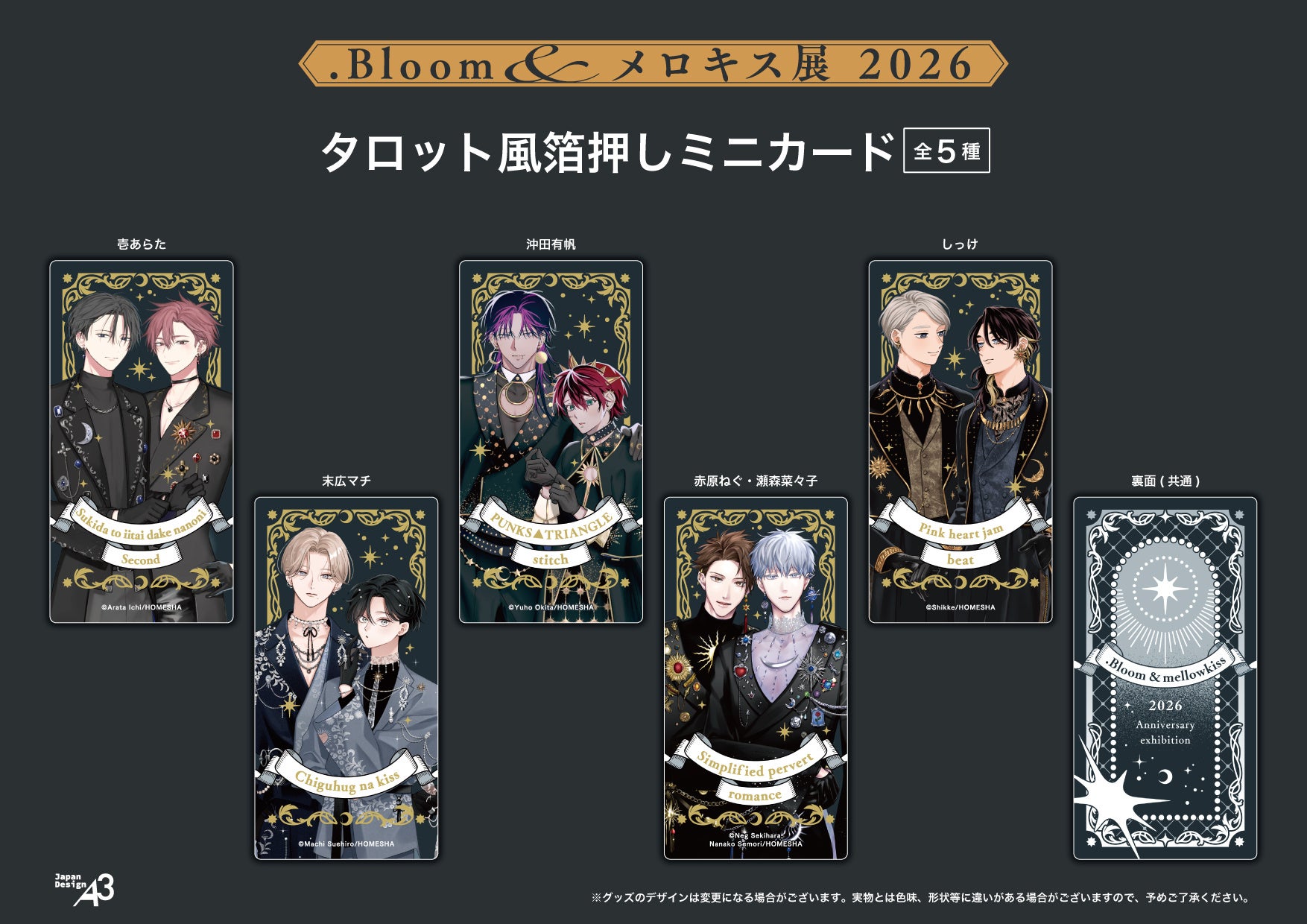 ・「タロット風箔押しミニカード」の配布(全5種ランダム配布/セット販売にて事後通販予定)
