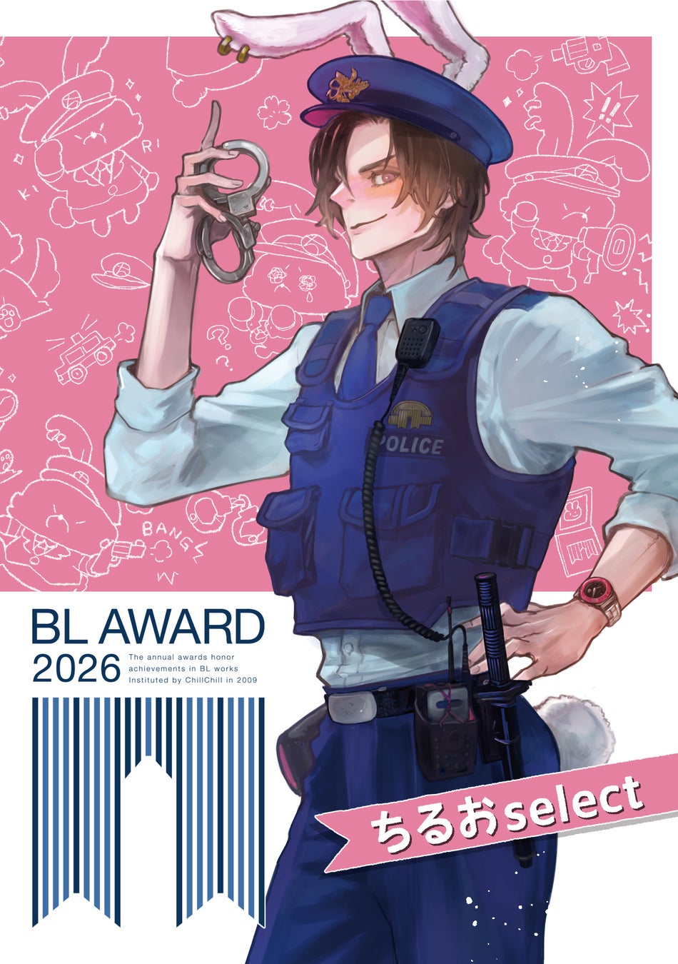 表紙は前回に引き続き、繊細な作画と絢爛な世界観で人気のBL作家・熊猫先生の描き下ろし!今回のテーマ「小さい頃なりたかった職業」に合わせ、ちるちる公式キャラクターの「ちるお」は警察官、「ディアス」は科学者の衣装に身を包んでいます。